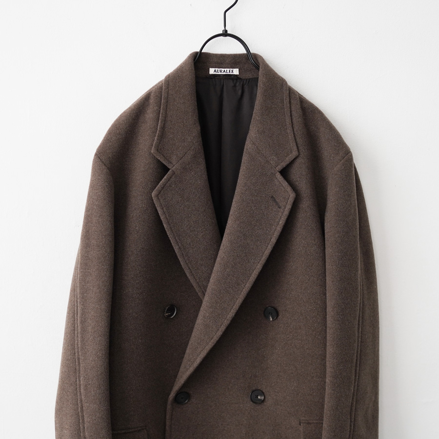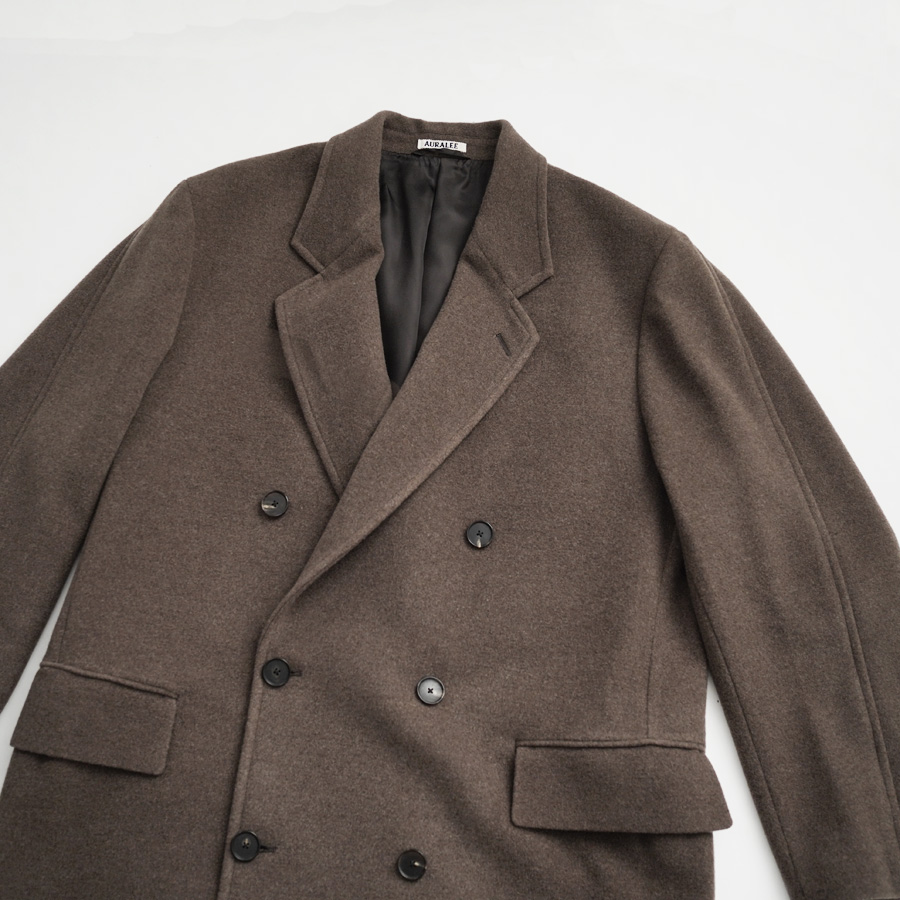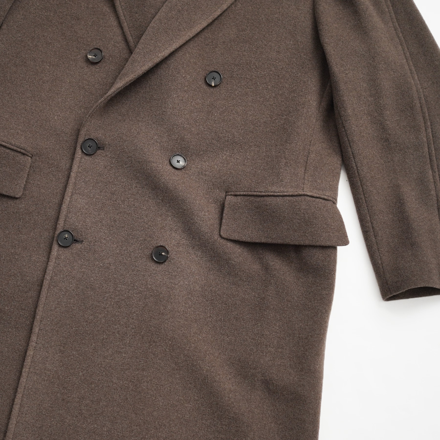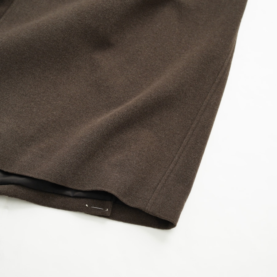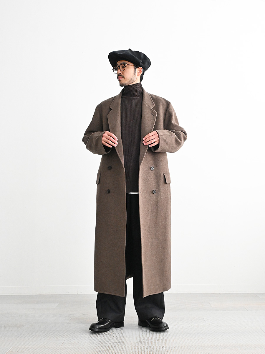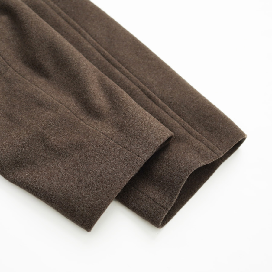 カシミヤと同等の繊度を持つ、オーストラリア産のウルトラファインメリノウール(15.5マイクロン、Super160's)を、オリジナル配合で紡毛糸にし、モッサー仕上げを施しました。