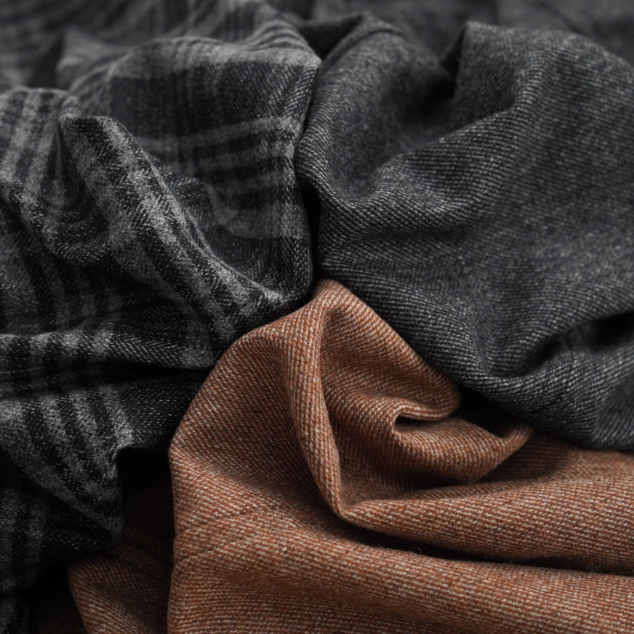 生地にはリサイクルウールのツイード素材を使用しています。