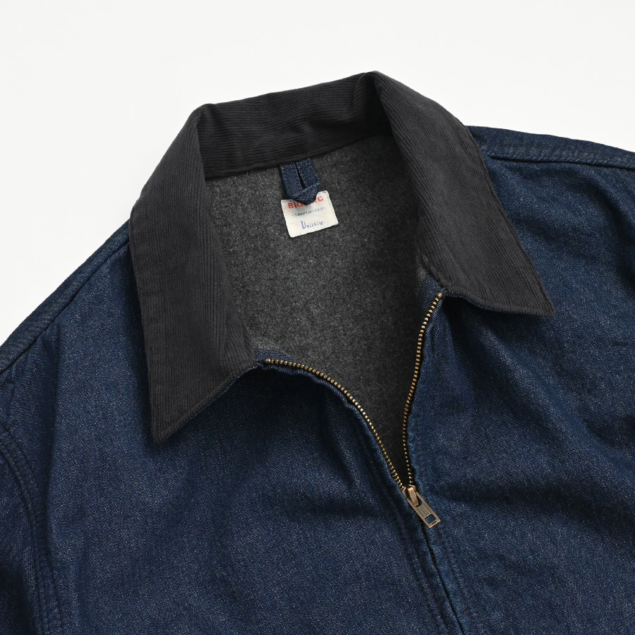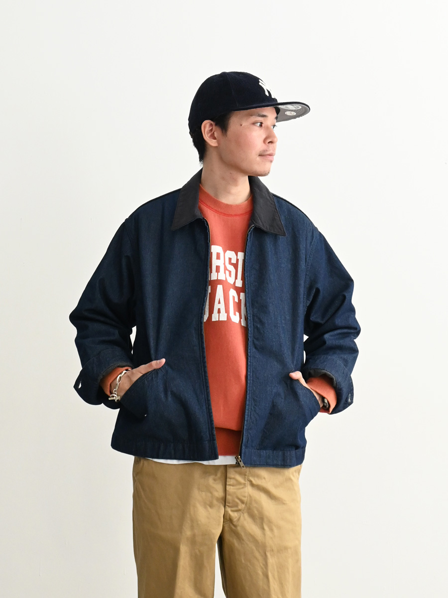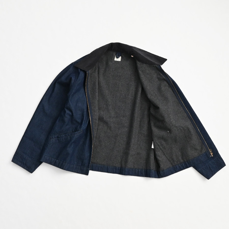 ヴィンテージ感漂うコットンデニムを使用した一着で、裏地には柔らかなブランケット素材を採用。