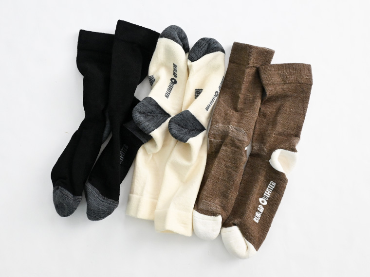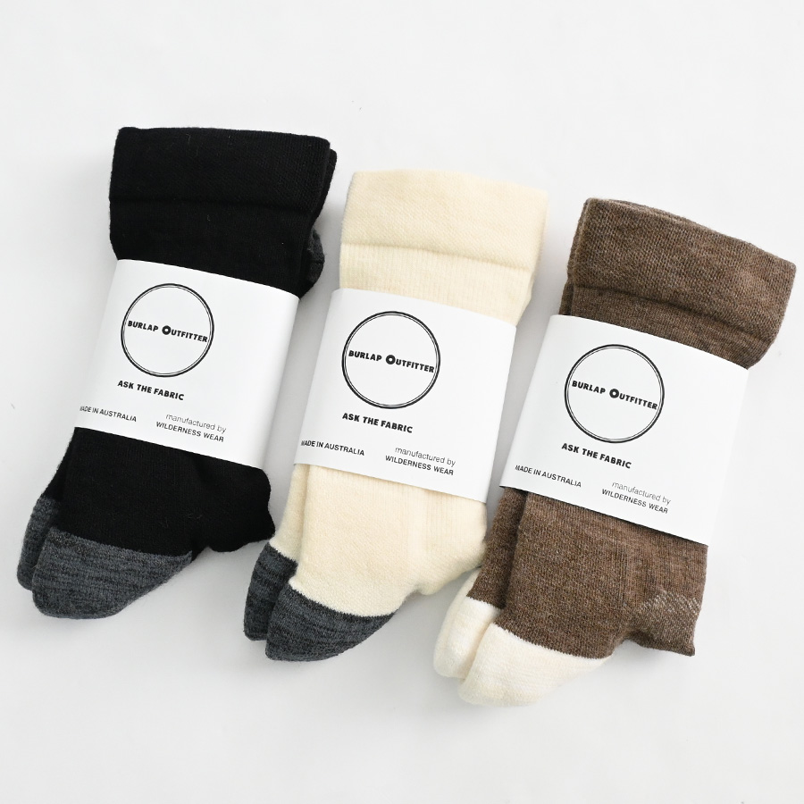 オーストラリアのアウトドアブランドWILDERNESS WEAR社に制作を依頼したメリノウールソックス。