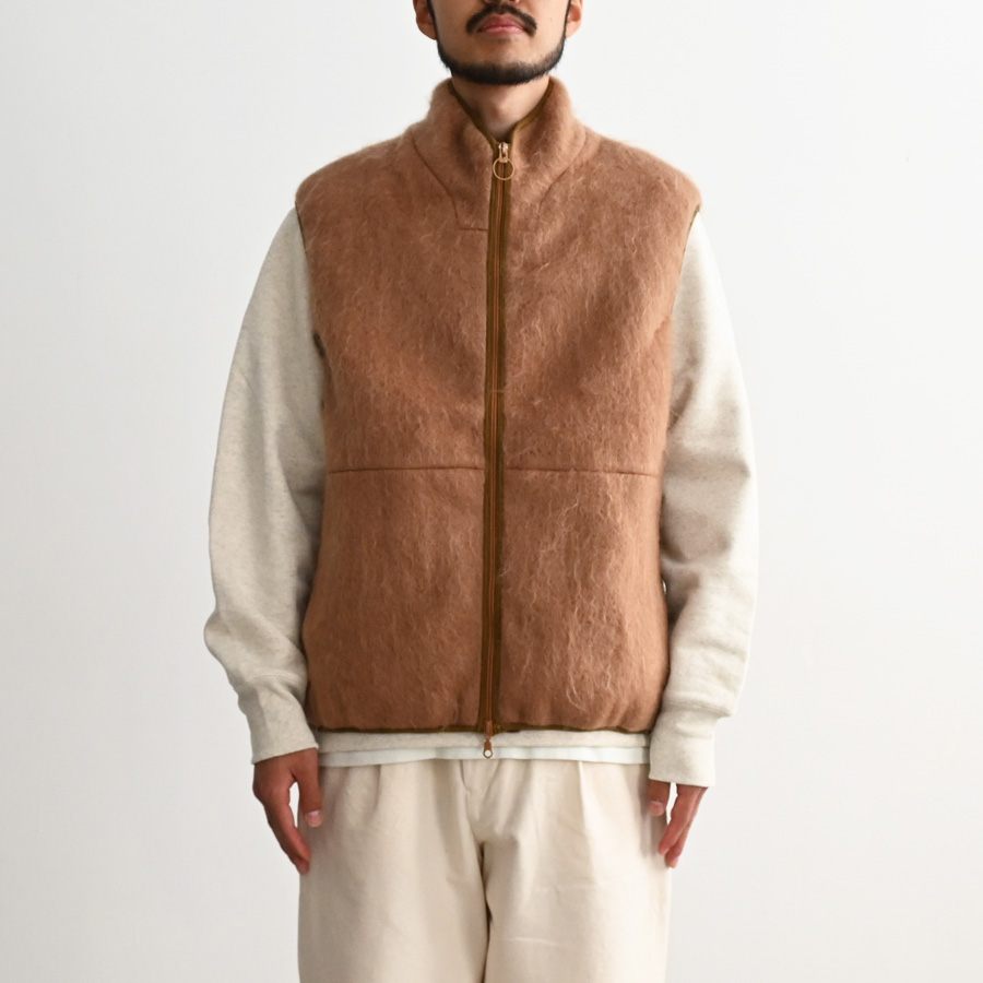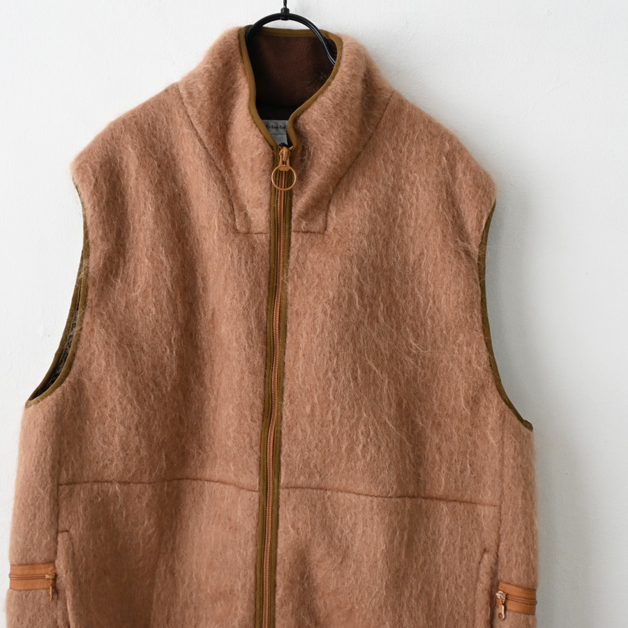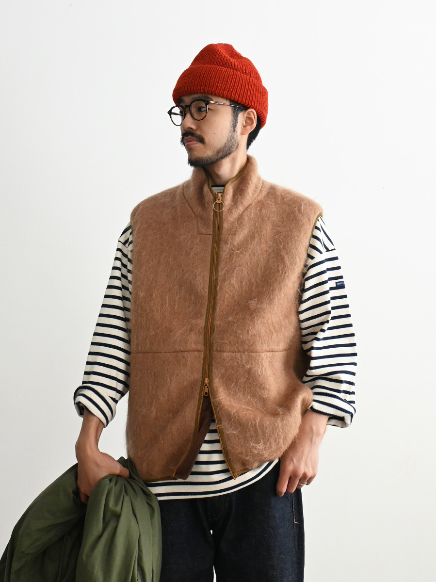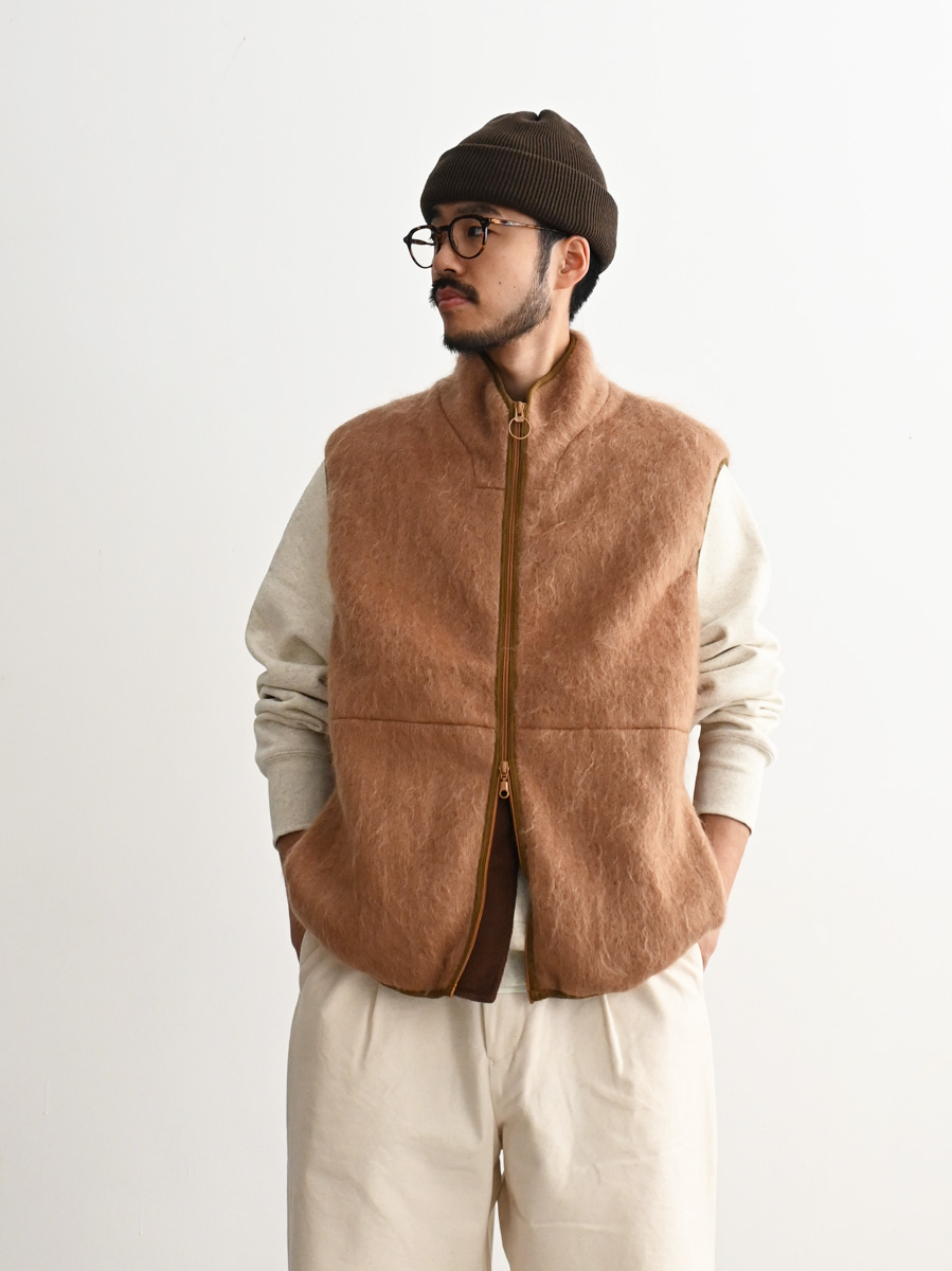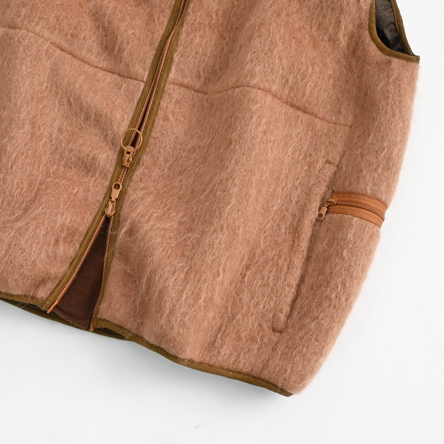 ウールやモヘアなどの毛足の長い素材を使用したジップベストです。