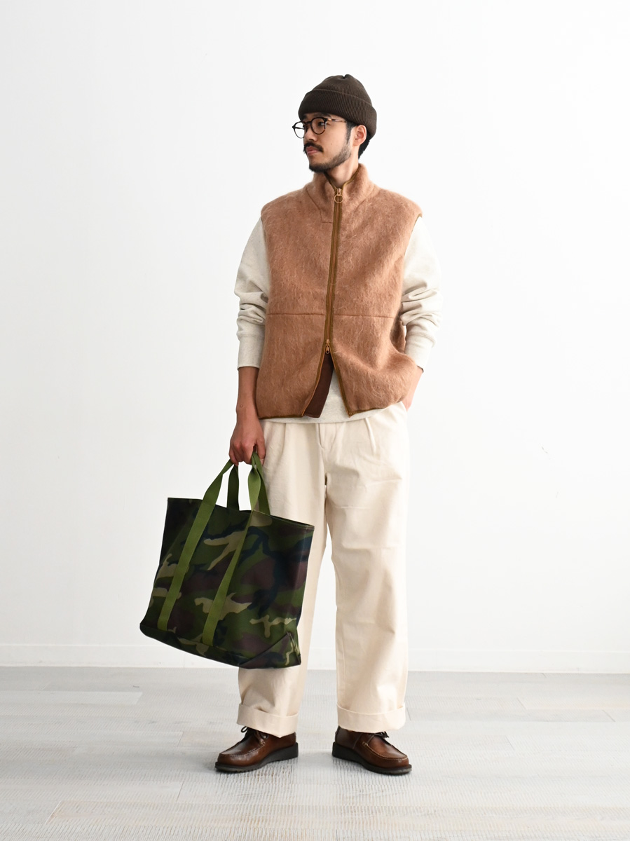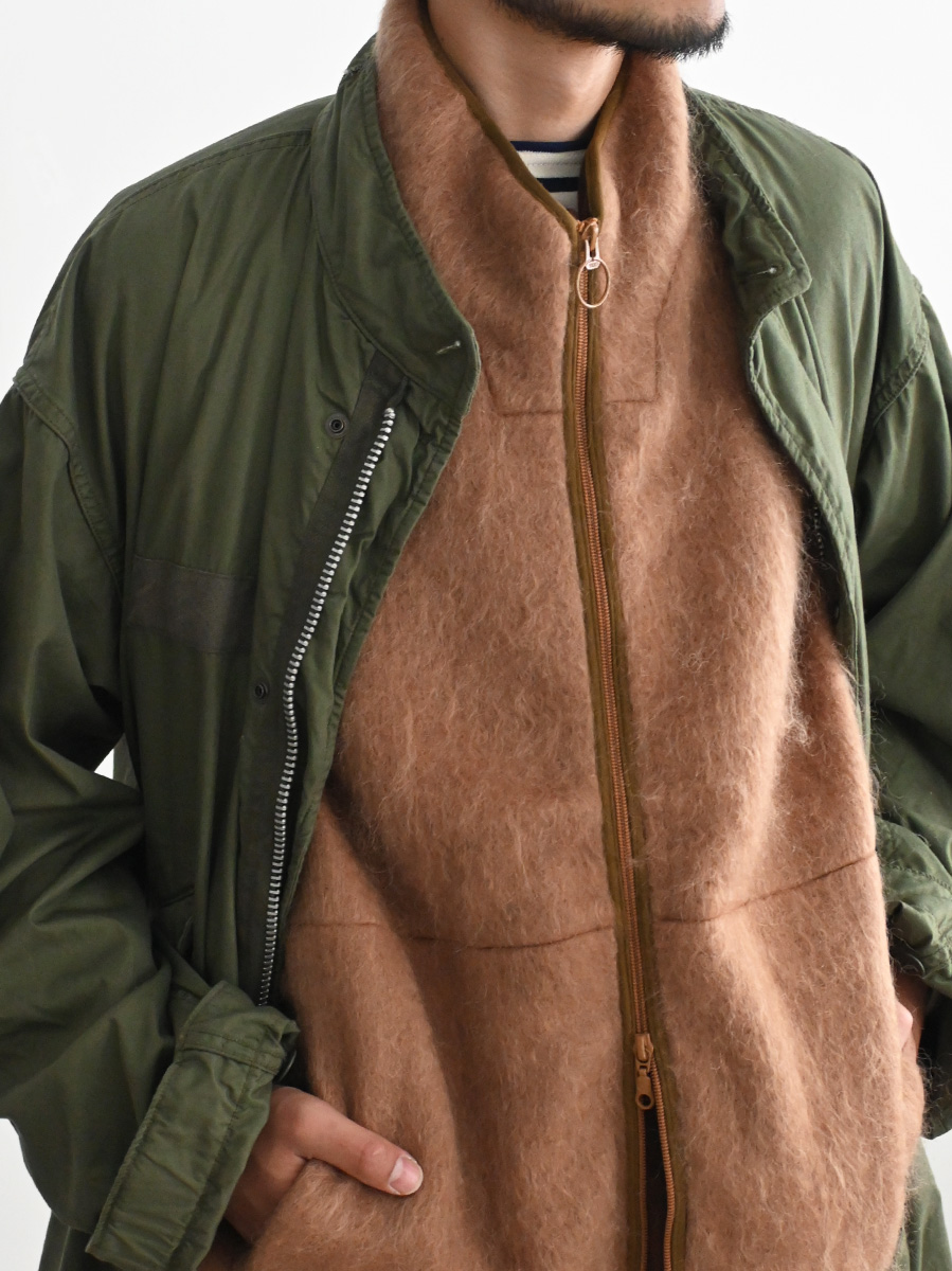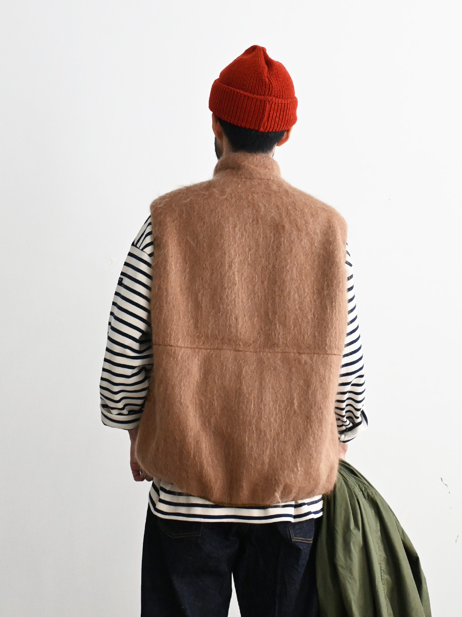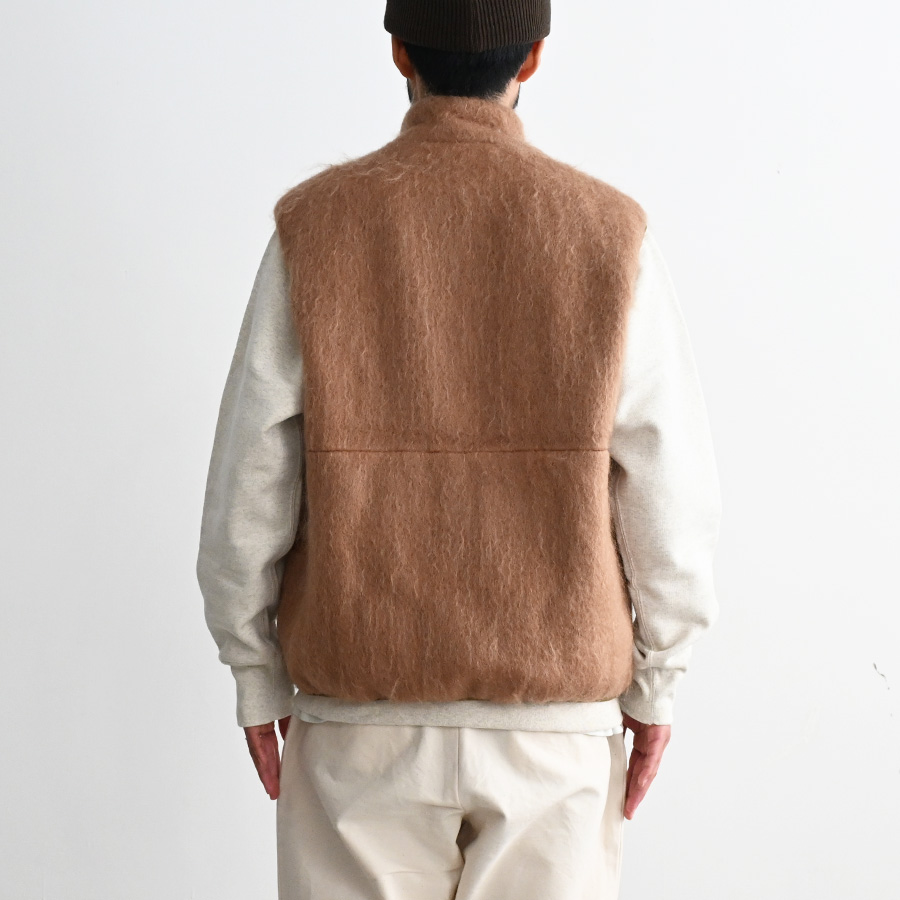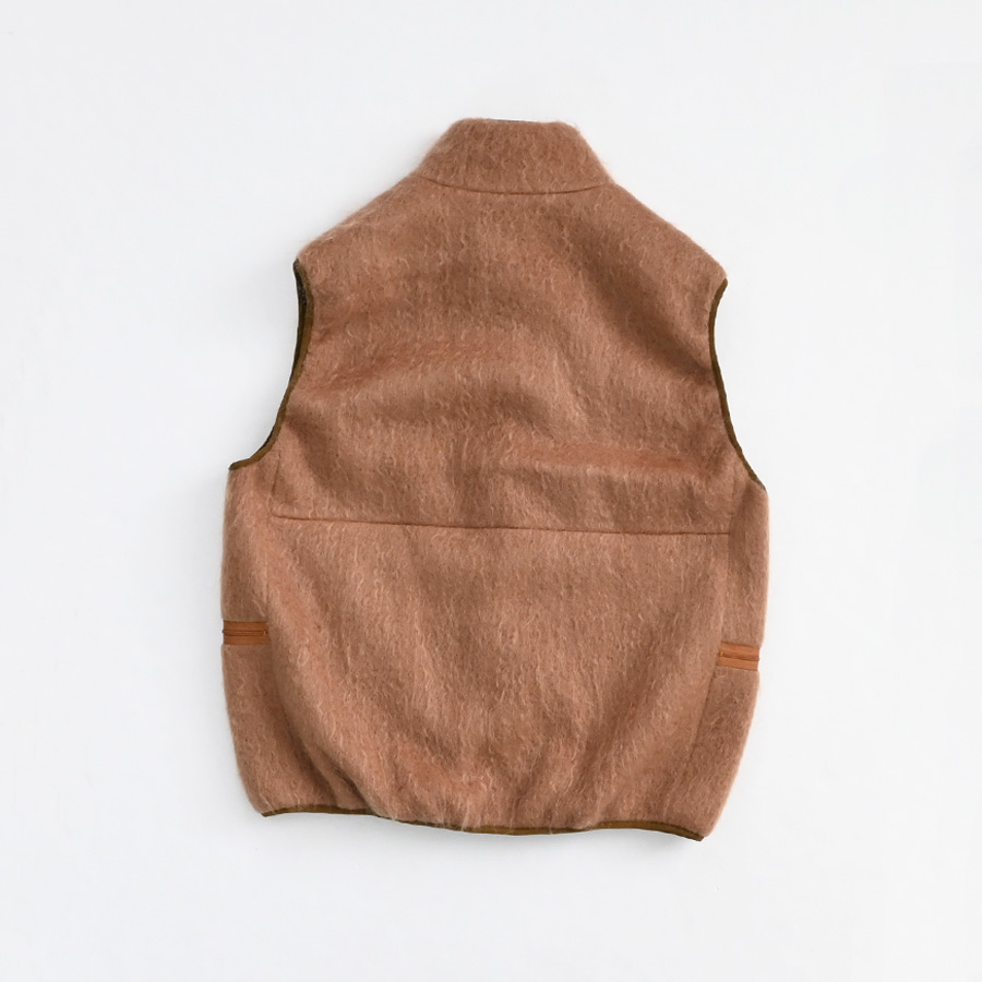 ウールやモヘアなどの毛足の長い素材を使用したジップベストです。