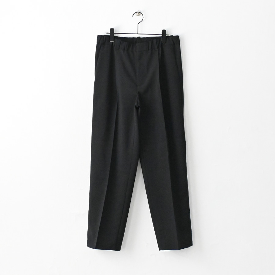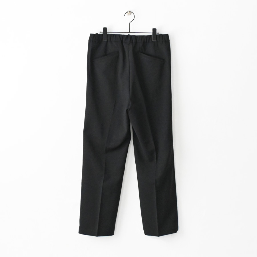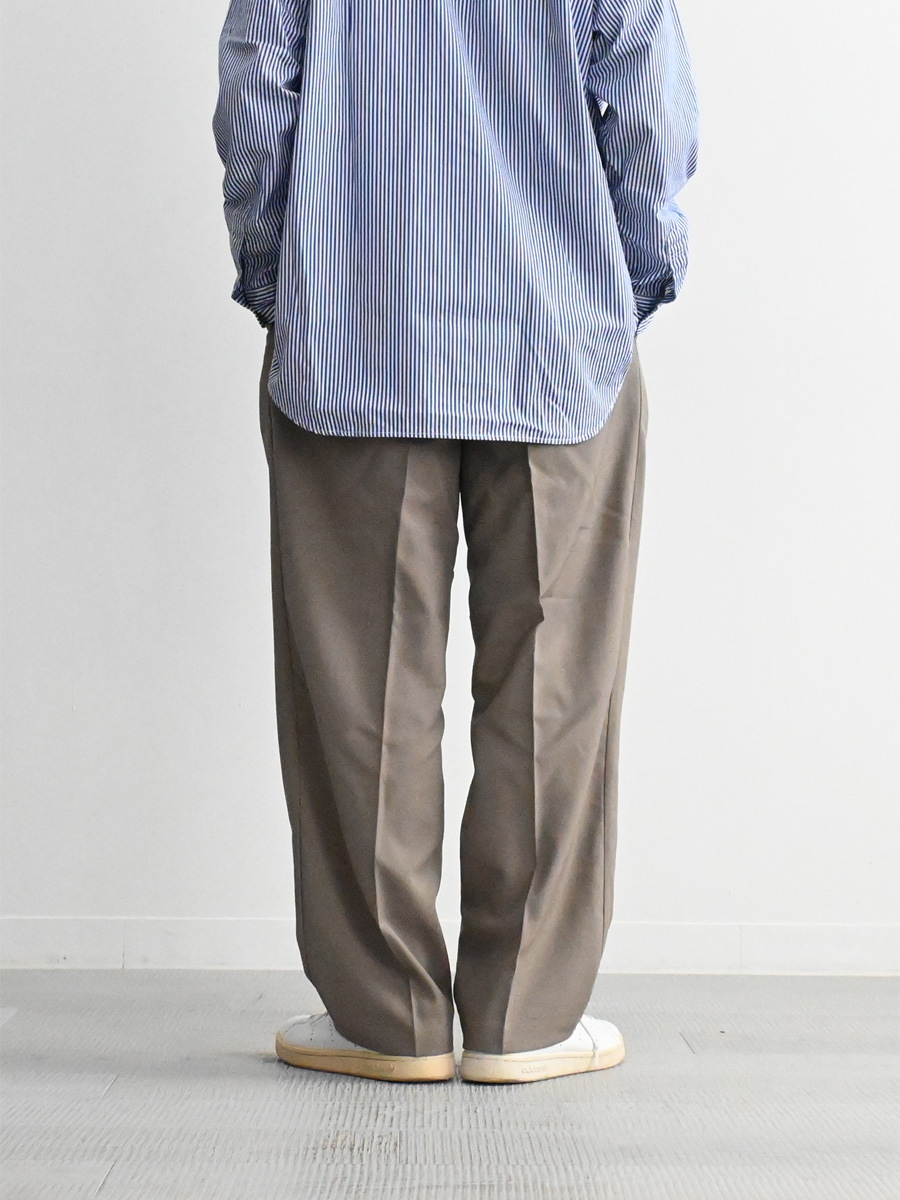 ウールのような風合いをもつポリエステル素材を使ったパンツ。
