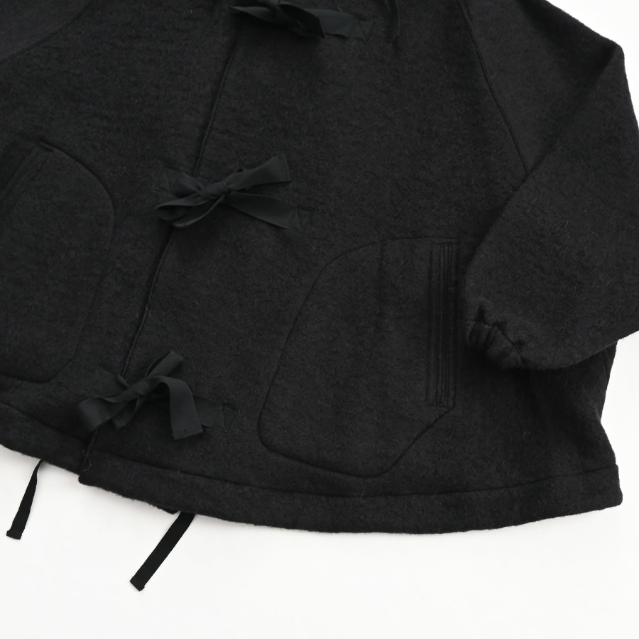 打ち合わせが深く杉綾テープとドットボタンで開閉できる様仕上げています。