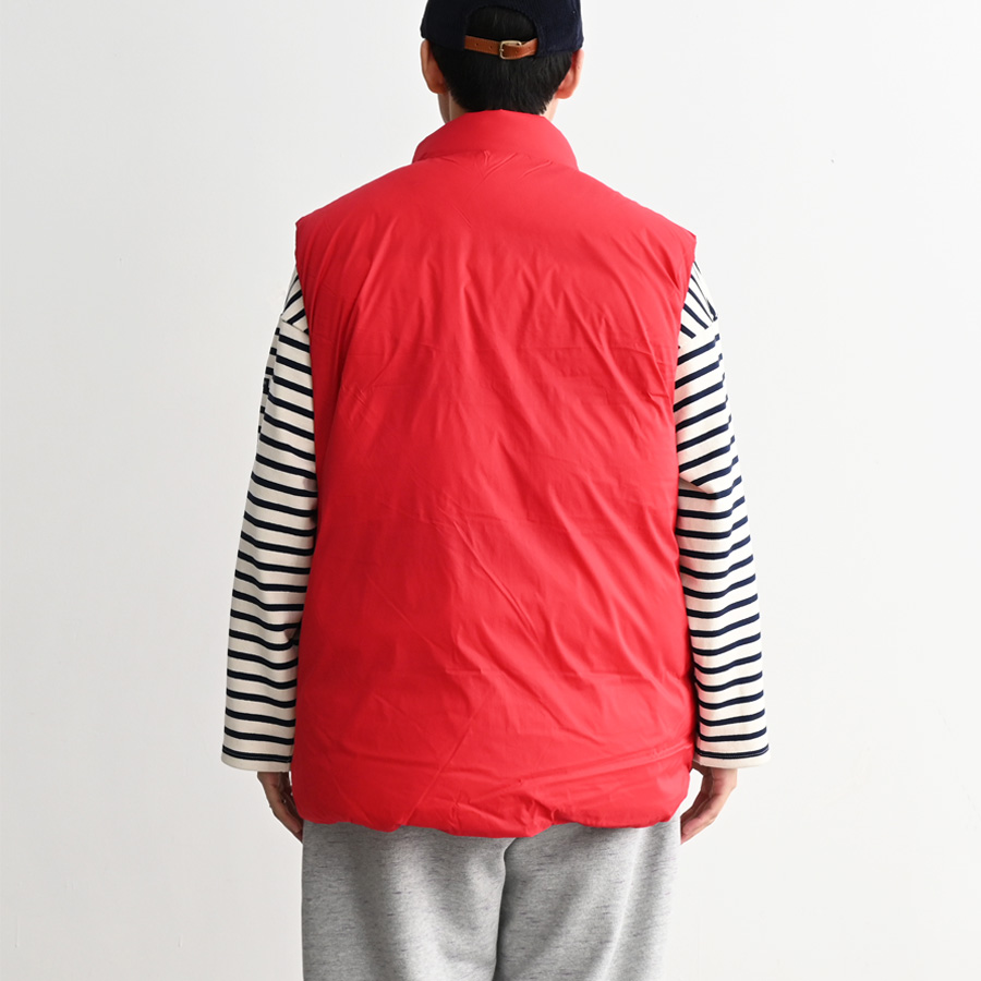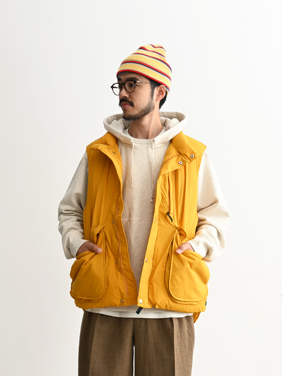 大きな腰ポケットが特徴の当社の90年代のウィンディ・リッジ・ジャケットをベースにデザインしたベストの素材をアップデート。
