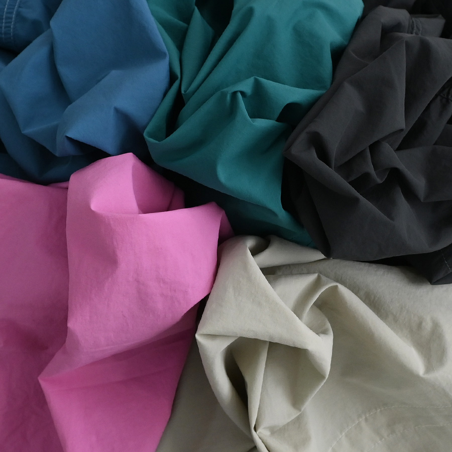 程よく張りがありながらも非常に滑らかなタッチとマットな表情が特徴の日本製の高密度ナイロンタフタを使用しています。