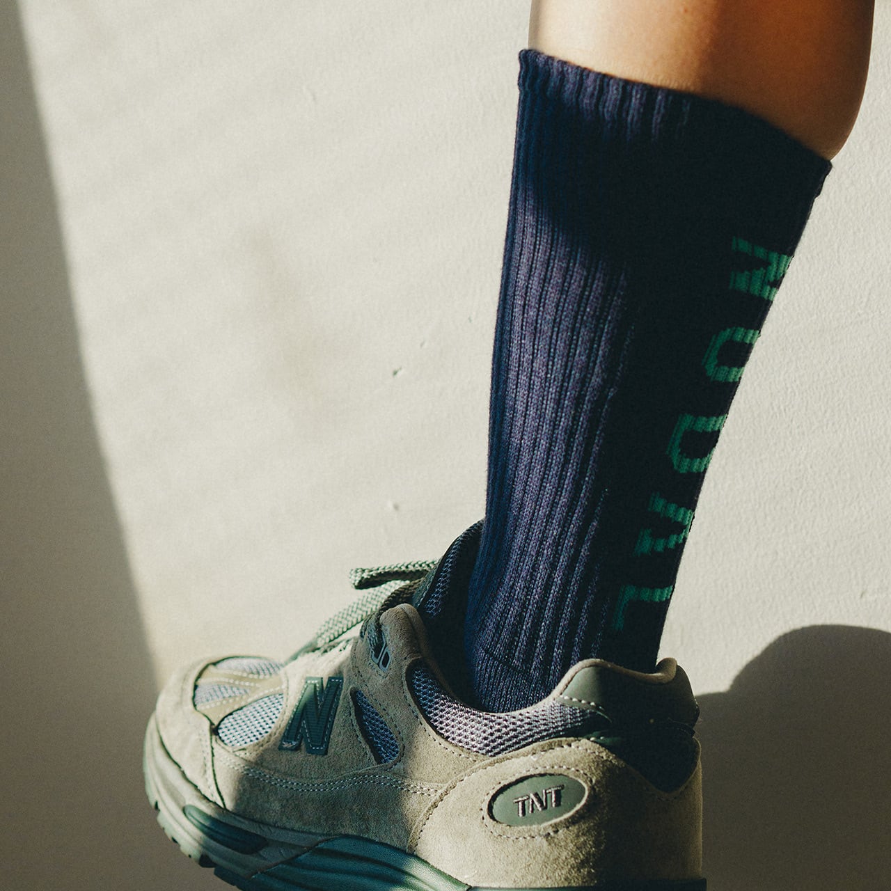 背面に「NODAL」のロゴをあしらった、ブランドを象徴するアイコニックなソックス。