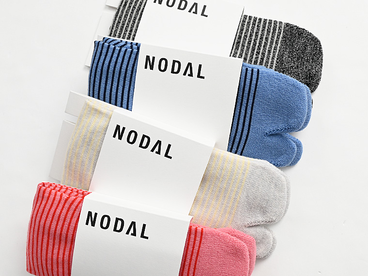NODALとは物事が交わる接点という意味で、足袋製造で培った知識や良さをソックスと混ぜ合わせ、ファッション・スポーツシーンに向けた新しいプロダクトを発信しています。