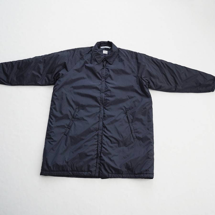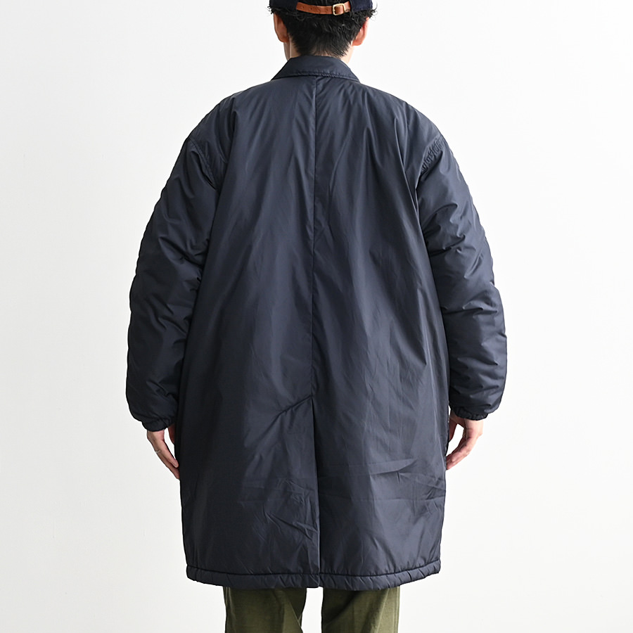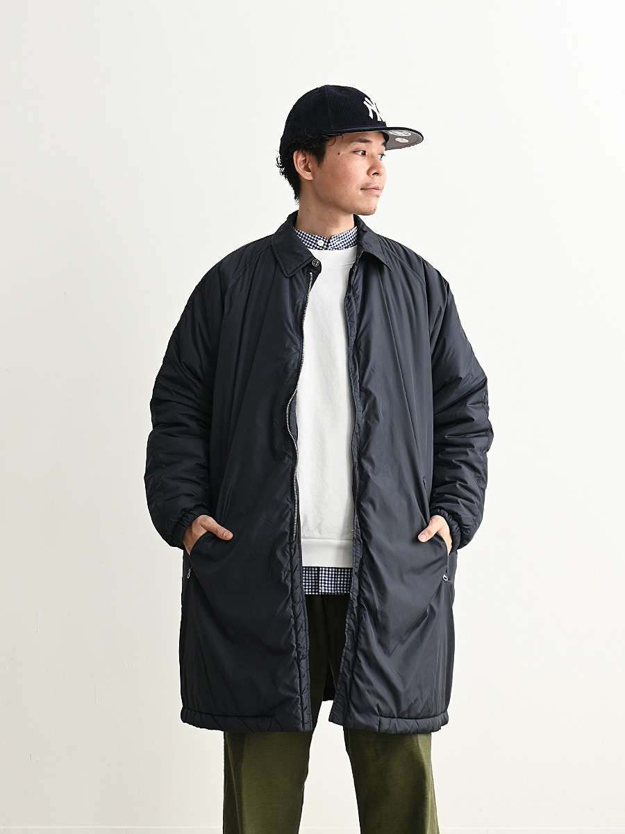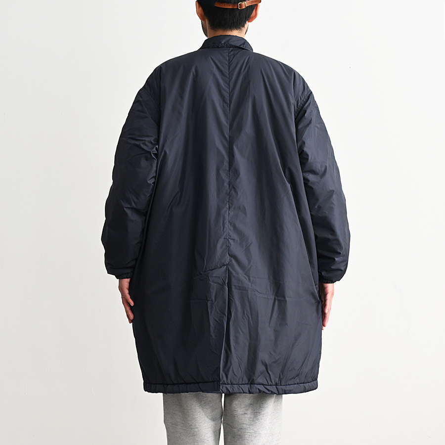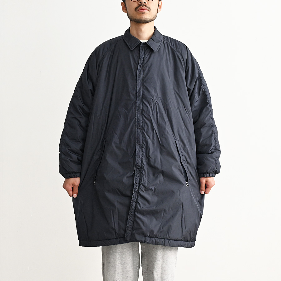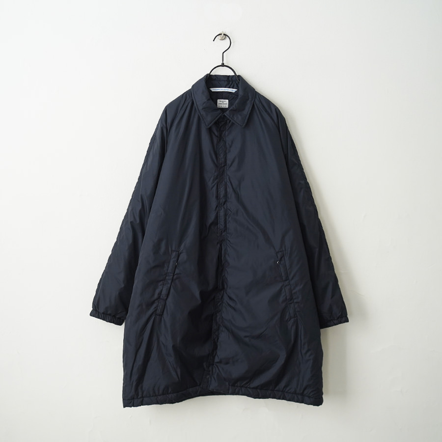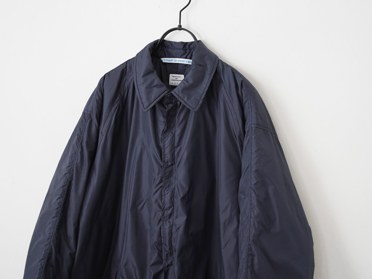 N.O.UN Uniformのお家芸とも言える無機質なナイロン素材を全面に打ち出した非常にシンプルなコート。