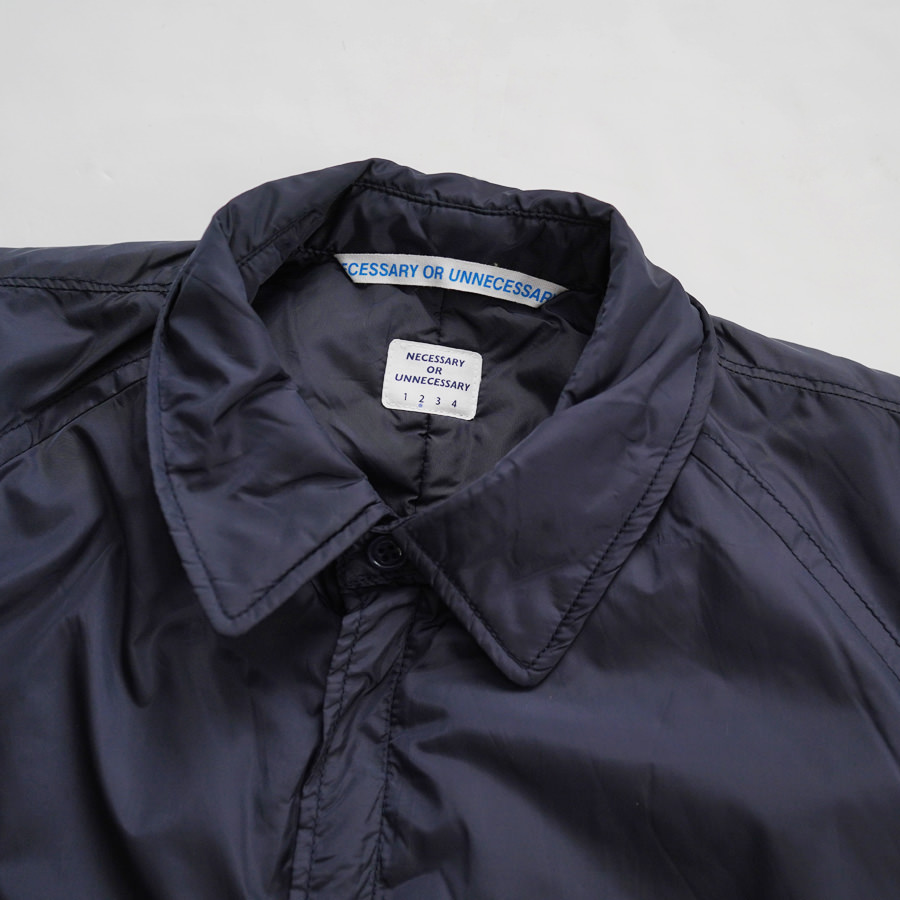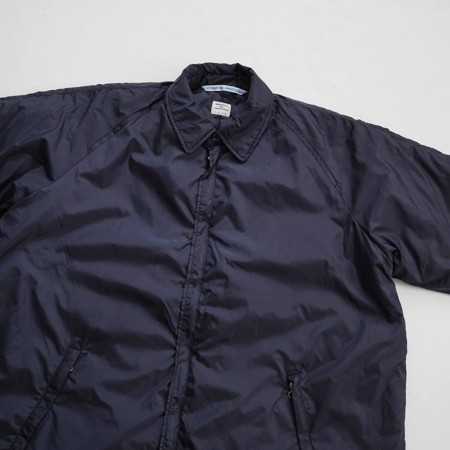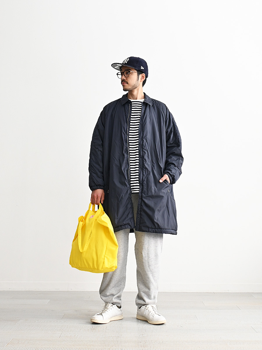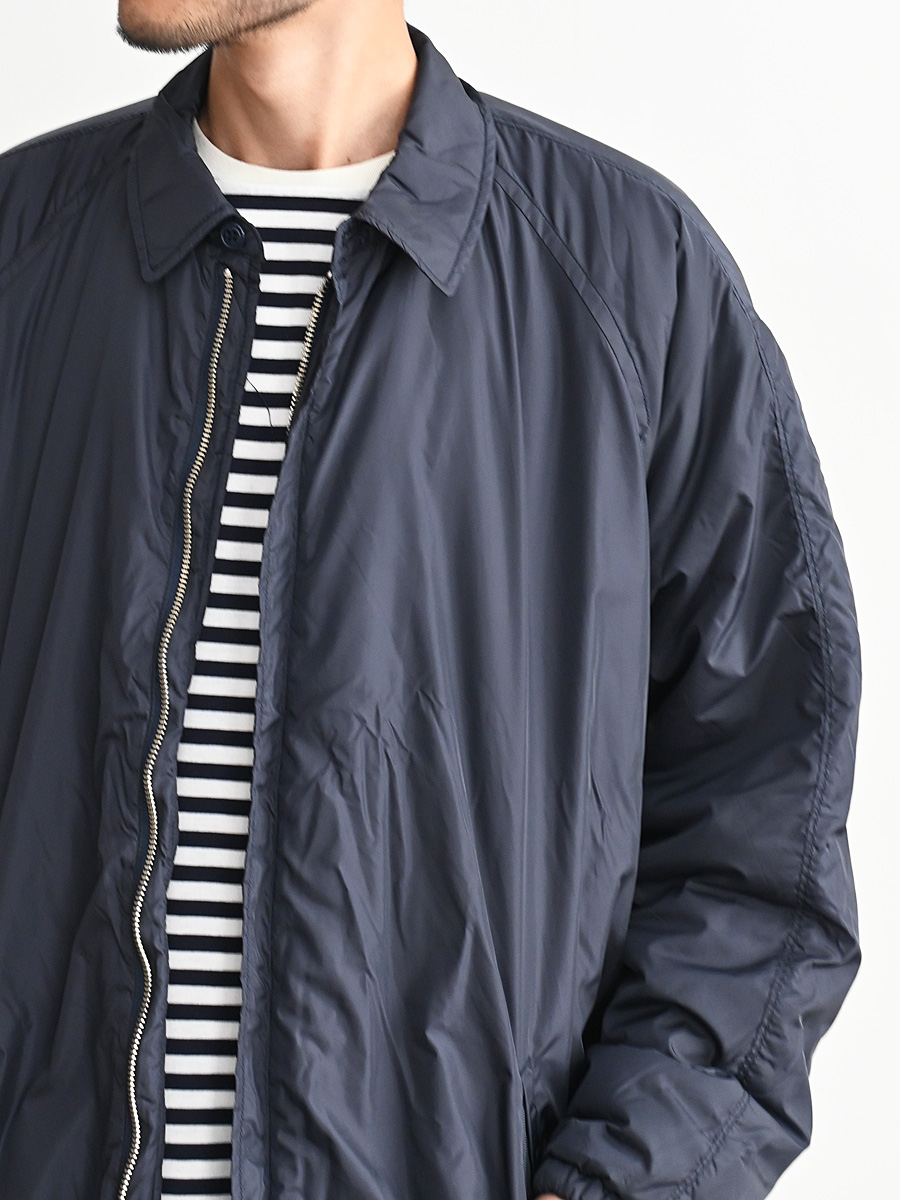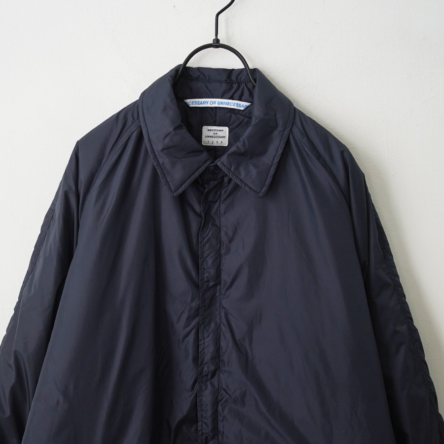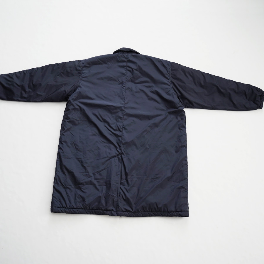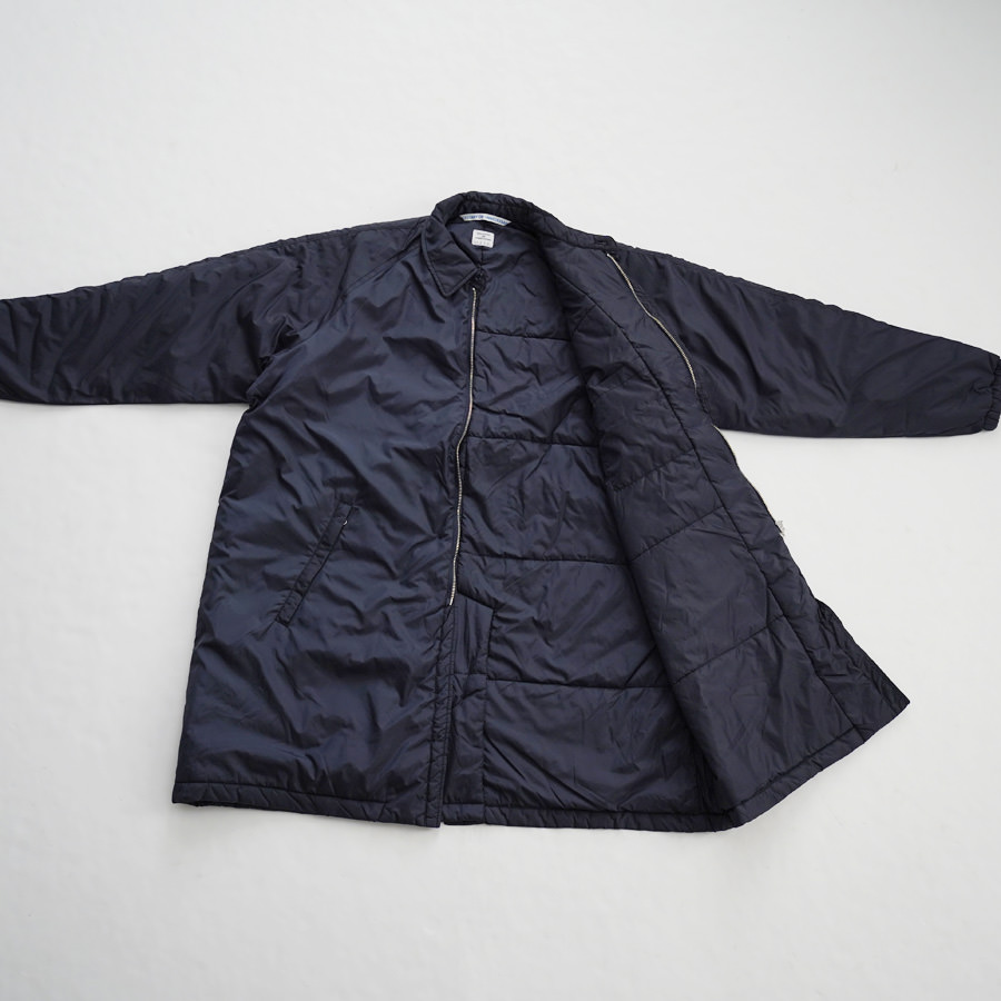 N.O.UN Uniformのお家芸とも言える無機質なナイロン素材を全面に打ち出した非常にシンプルなコート。