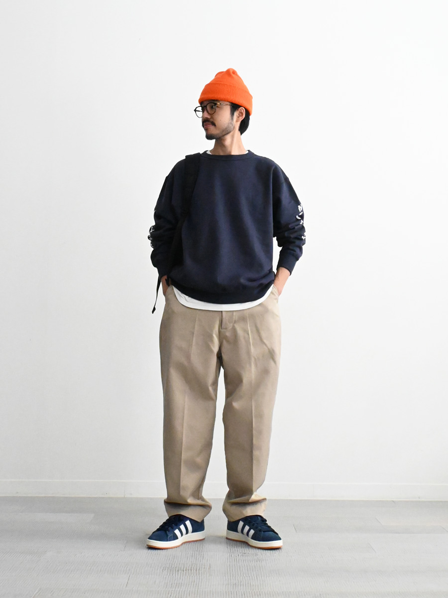 生地は、しっかりめの生地感とほどよい生地厚の裏起毛スウェット。