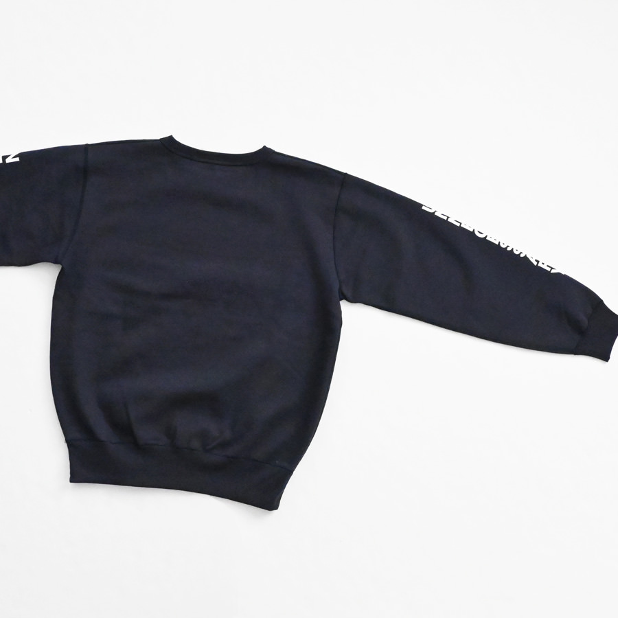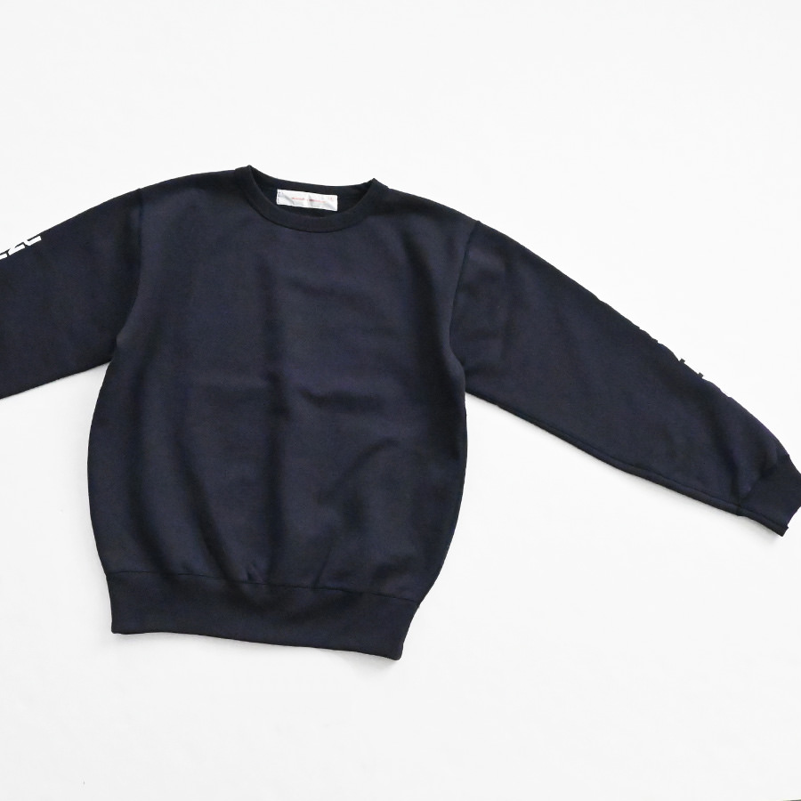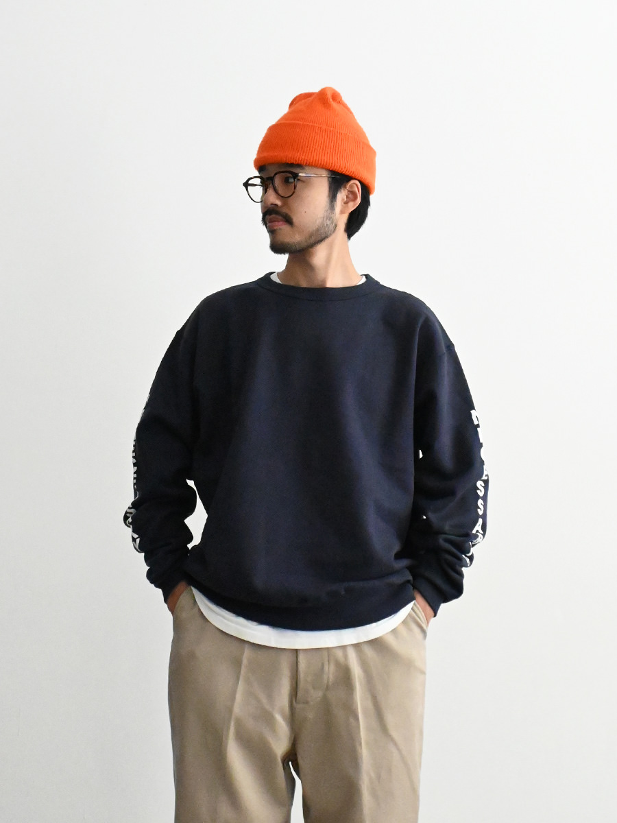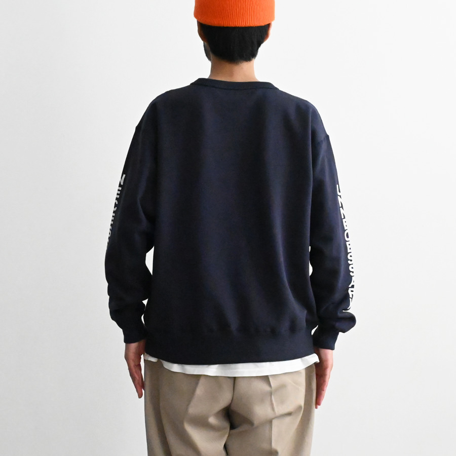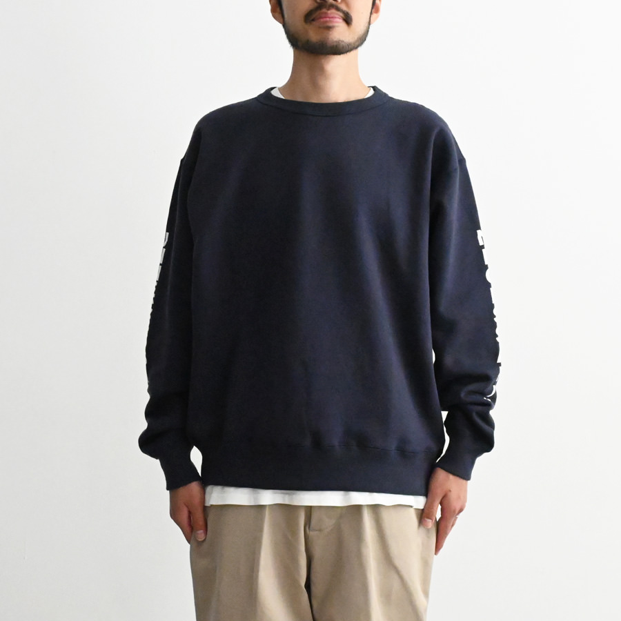 ブランド名をそのまま袖、左右にに分け大胆にプリントしたクルーネックスウェットです。