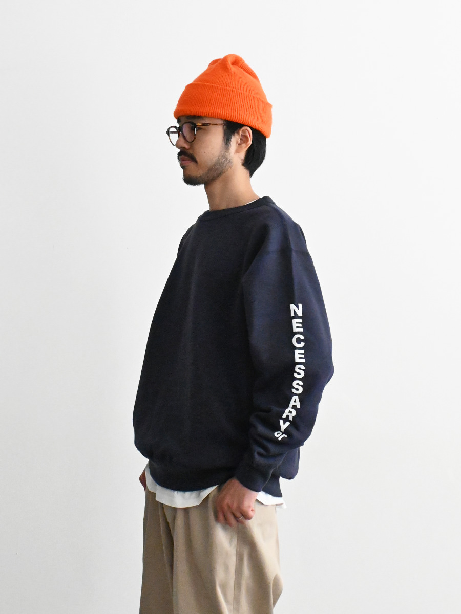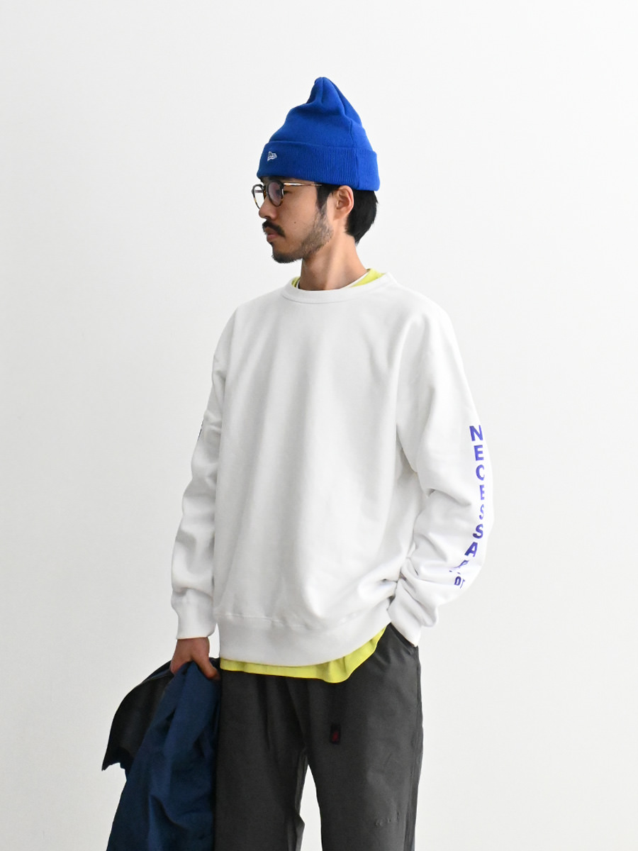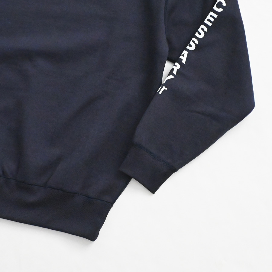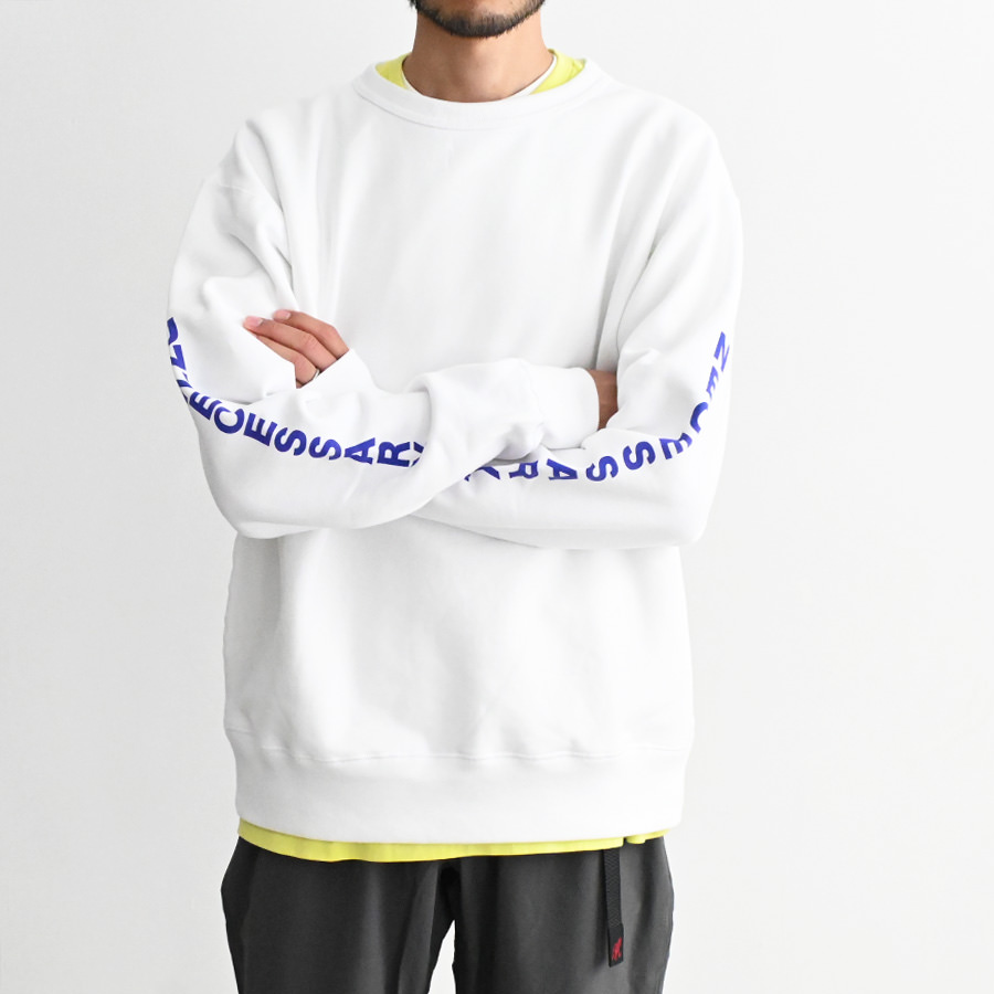 ブランド名をそのまま袖、左右にに分け大胆にプリントしたクルーネックスウェットです。
