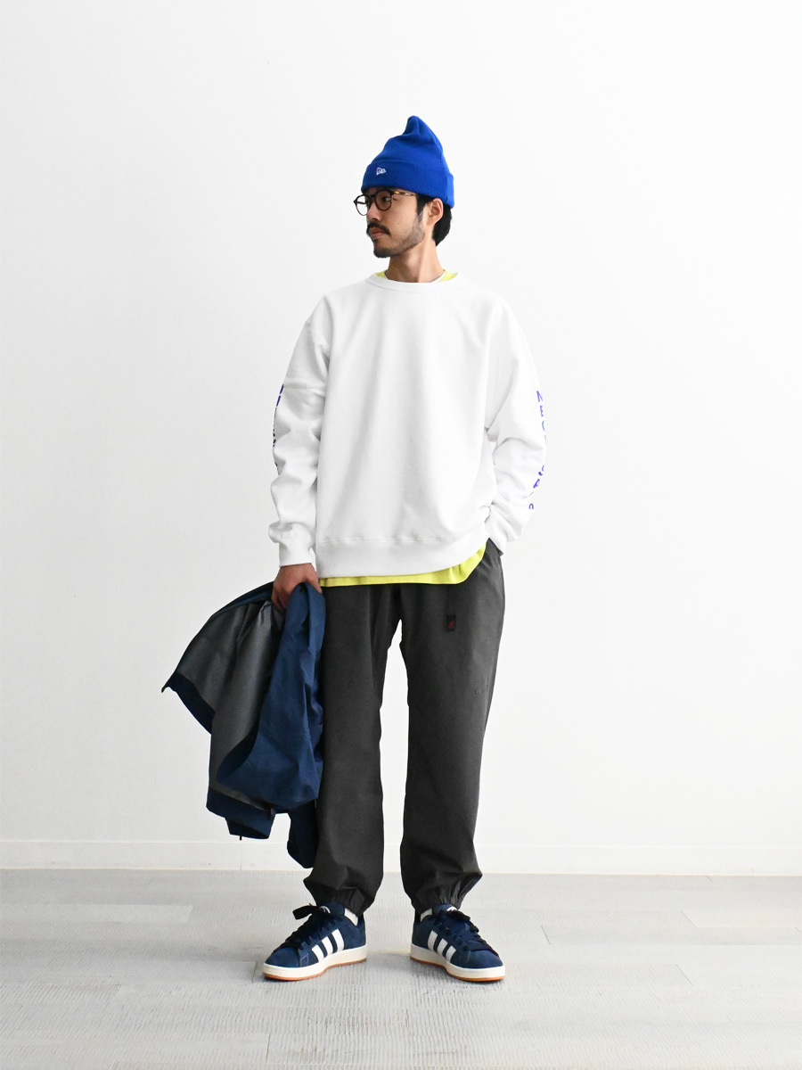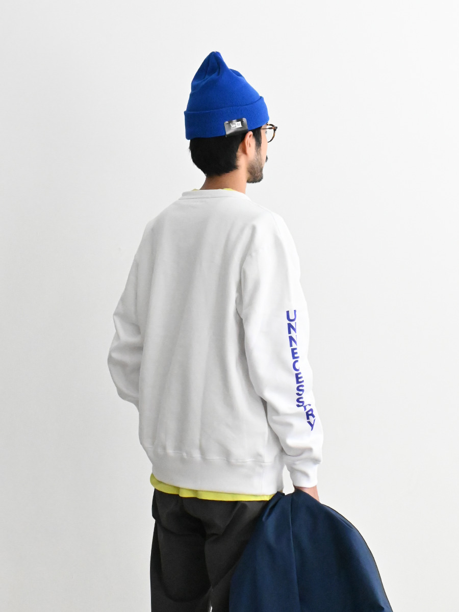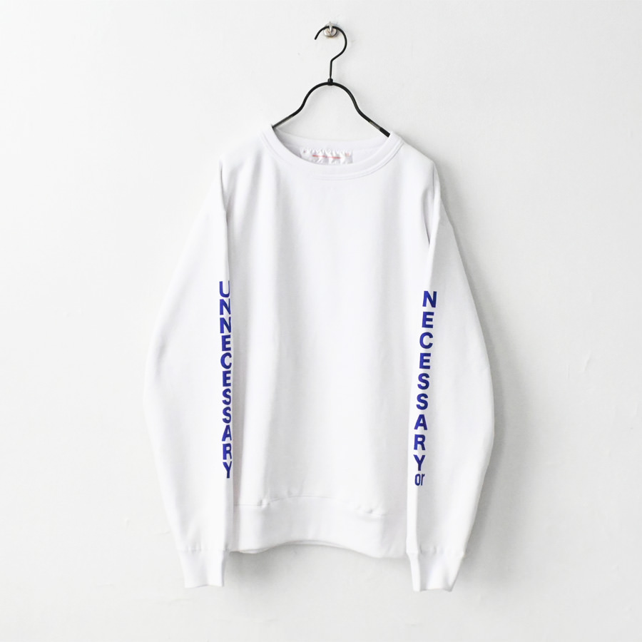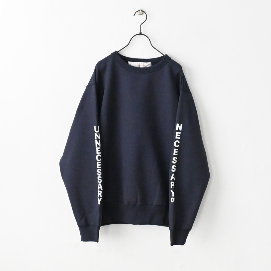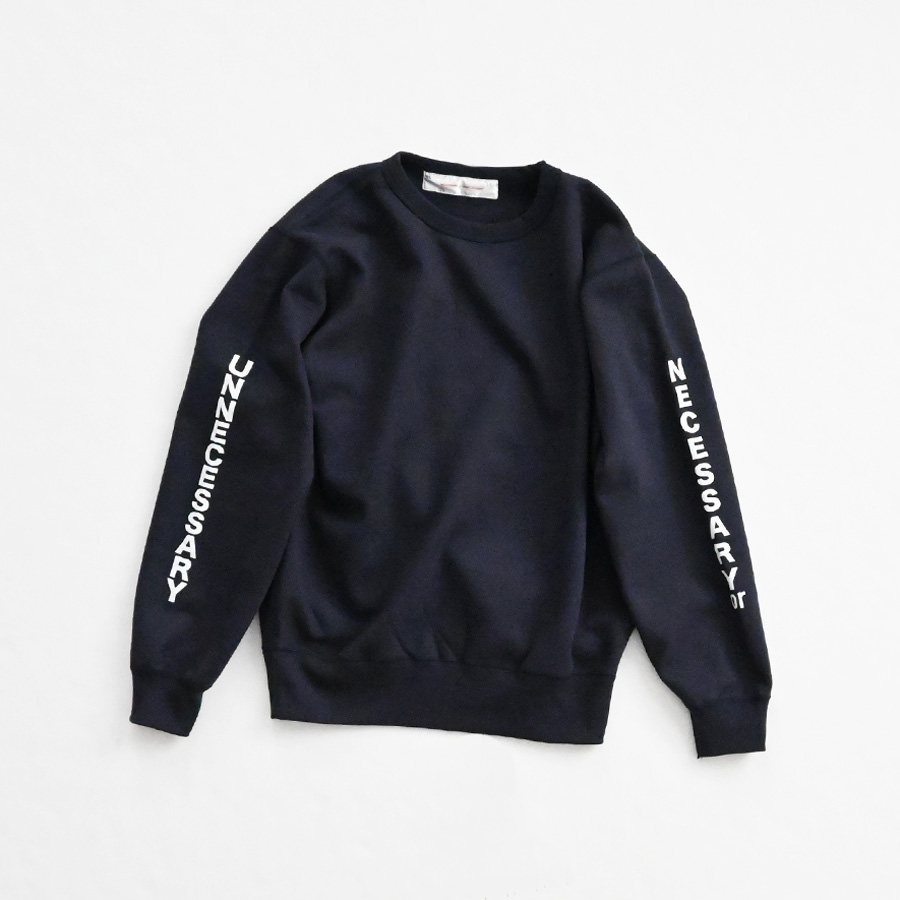 ブランド名をそのまま袖、左右にに分け大胆にプリントしたクルーネックスウェットです。