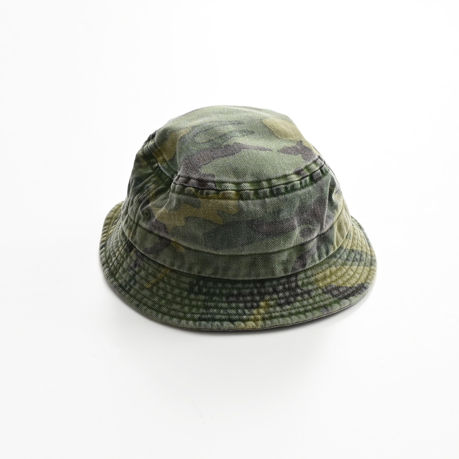 シンプルなカモフラージュ柄のバケットハット。