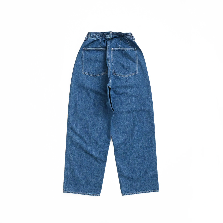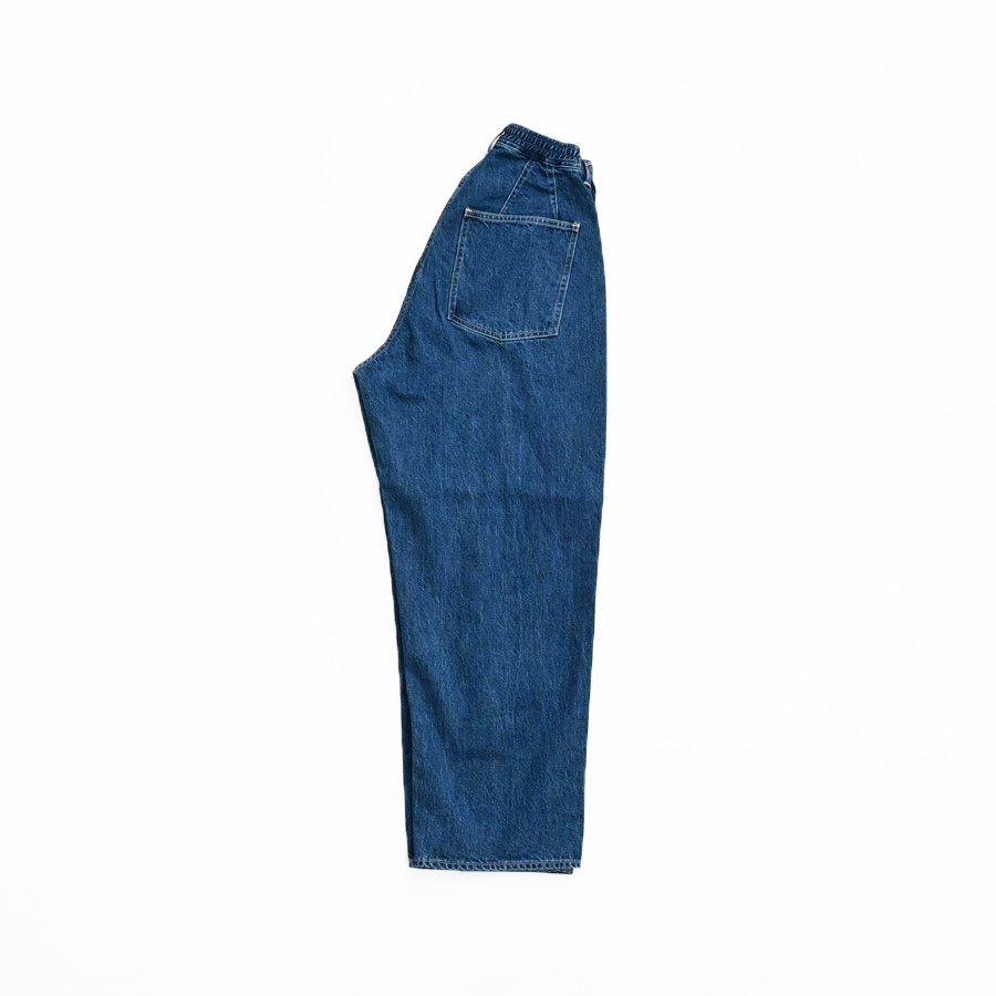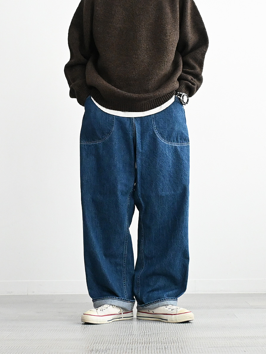 深めの股上と裾に向かって緩くテーパードのかかったシルエットが特徴で、フロント両サイドにはアウトポケット、後ろはパッチポケット付き。