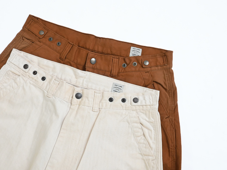 ウエストにスナップのアジャスターが付属、大きめのサイズをウエストを絞って着用が可能。