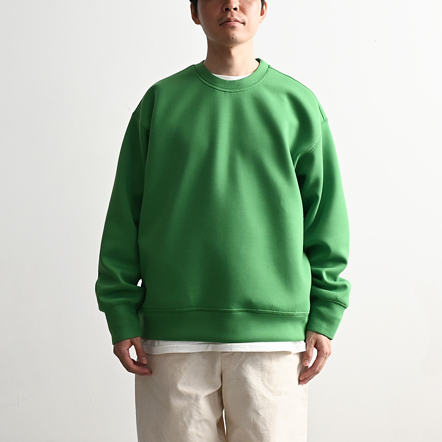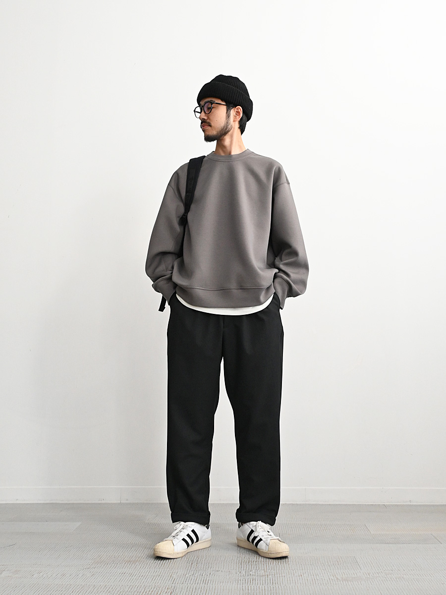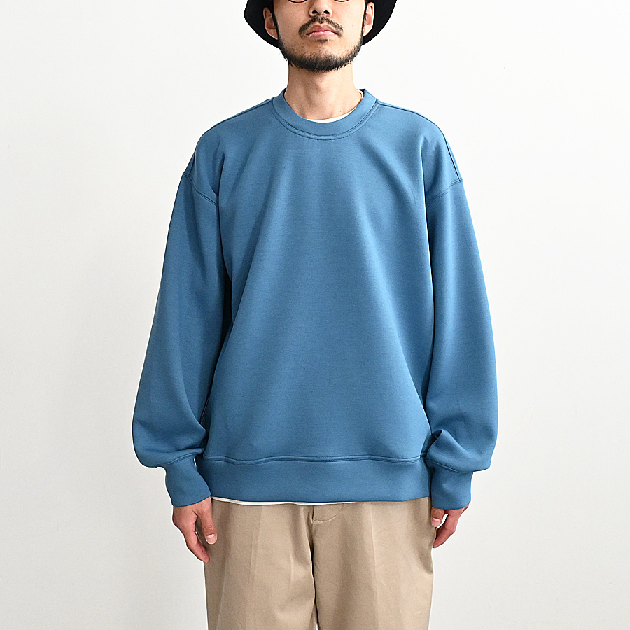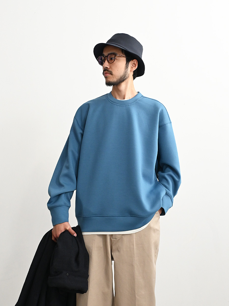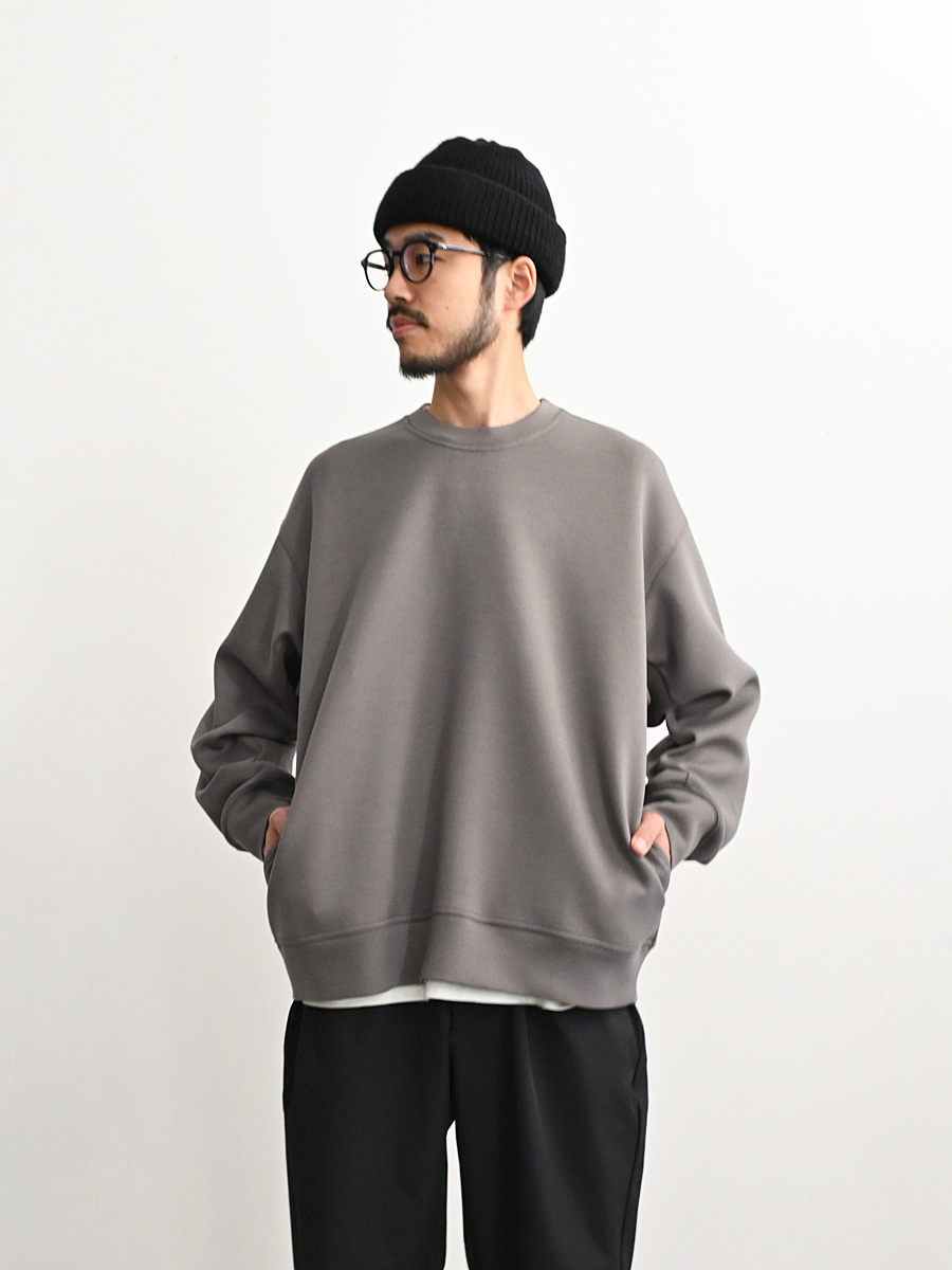 ゆとりのある身巾に対しすっきりとした着丈で仕上げたクルースウェット。