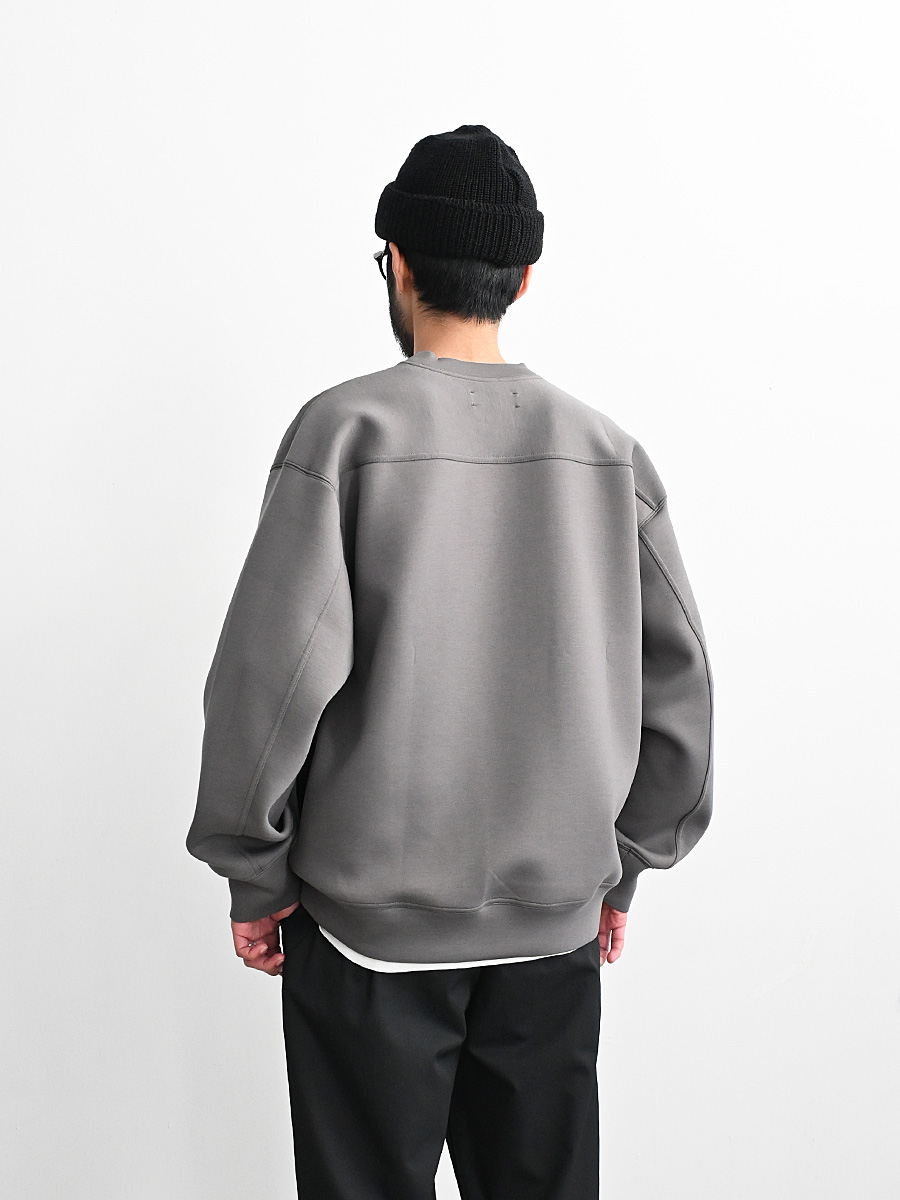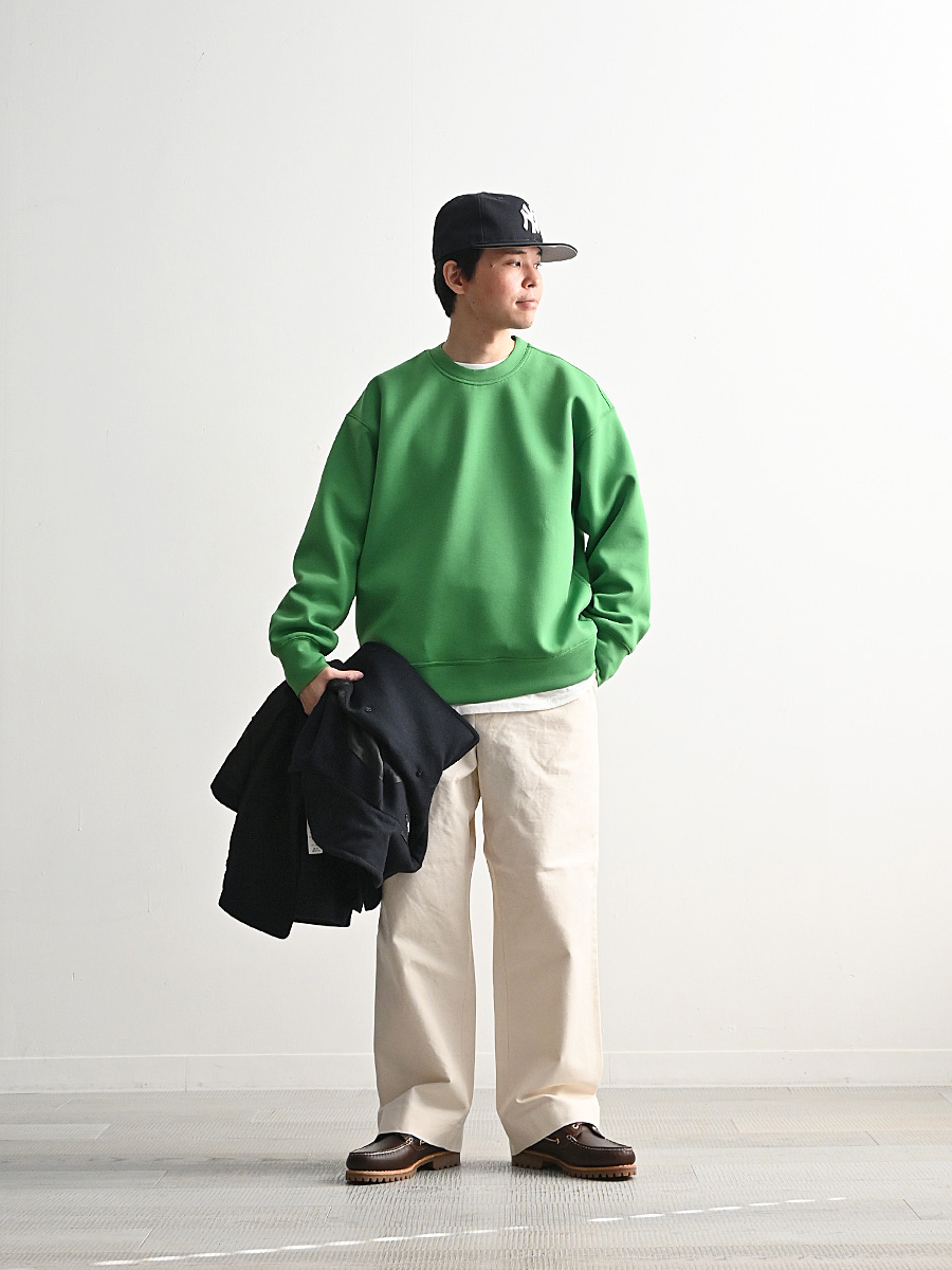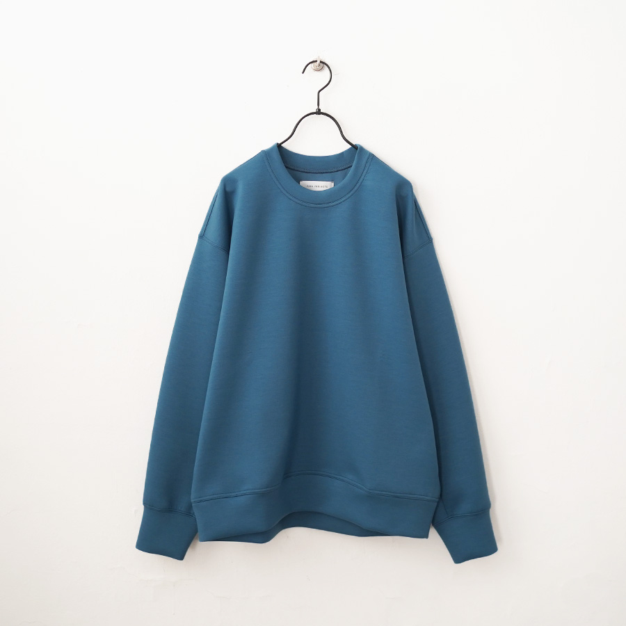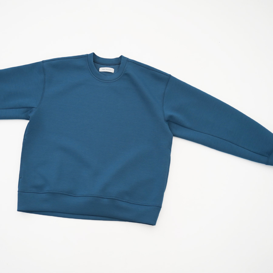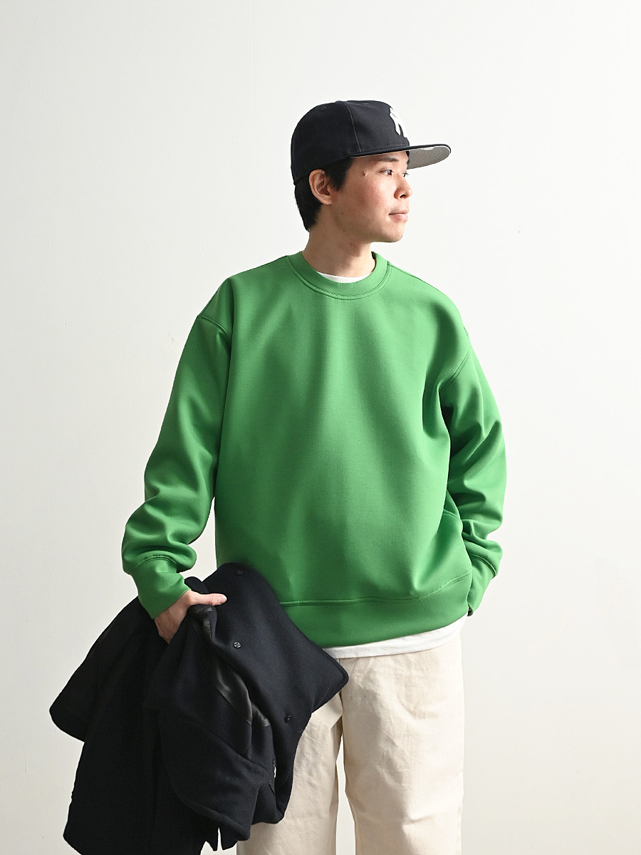 ゆとりのある身巾に対しすっきりとした着丈で仕上げたクルースウェット。