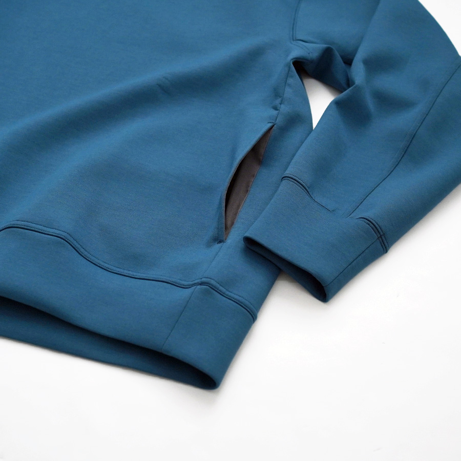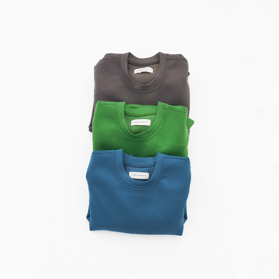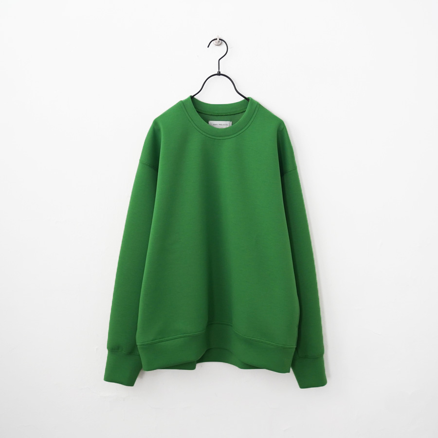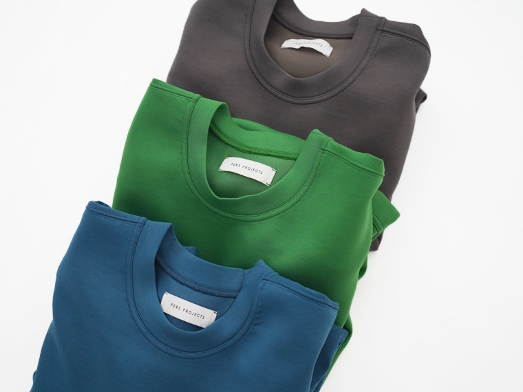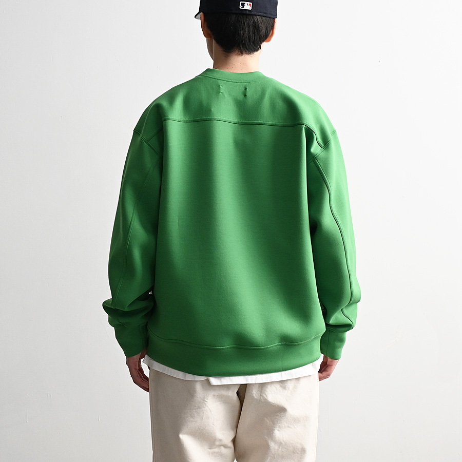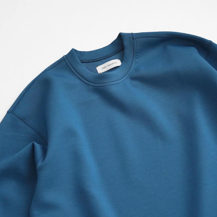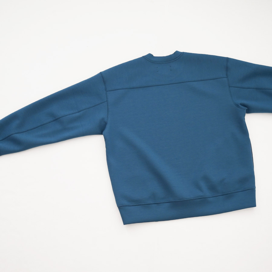 ゆとりのある身巾に対しすっきりとした着丈で仕上げたクルースウェット。