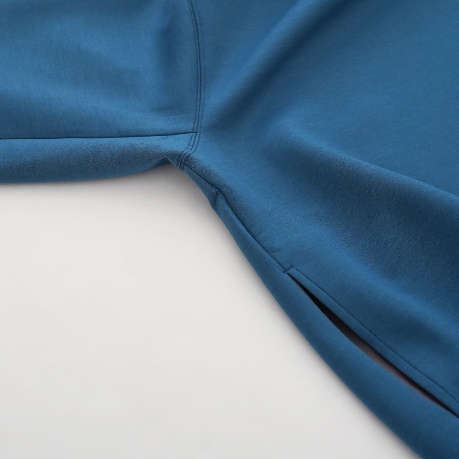 素材には嵩高くしっとりとした風合いのダブルニットを使用。