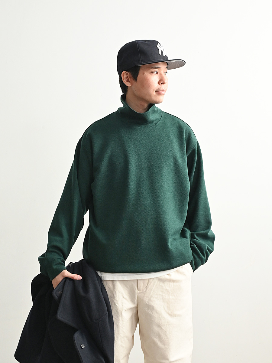 首元や袖リブなどの締め付けを緩くすることでリラックスした雰囲気に仕上げている。