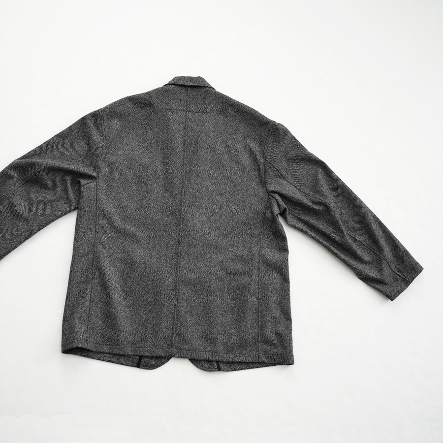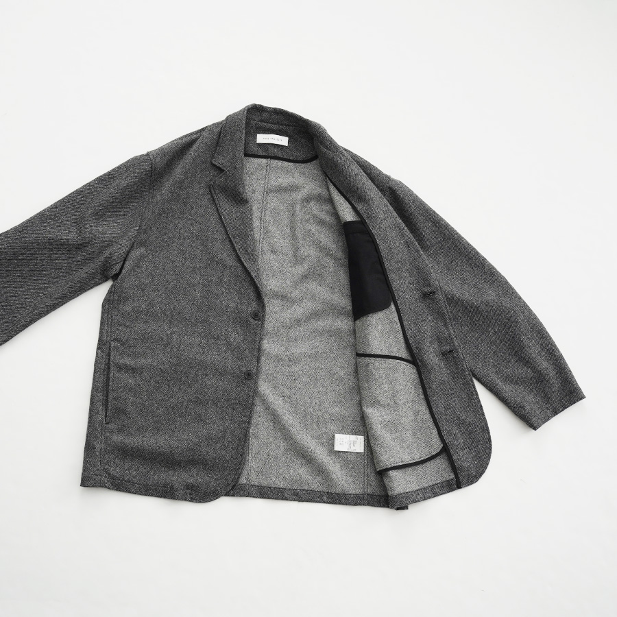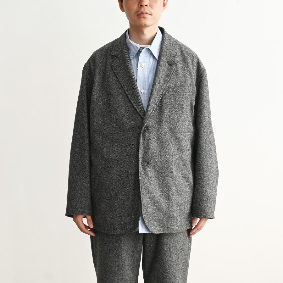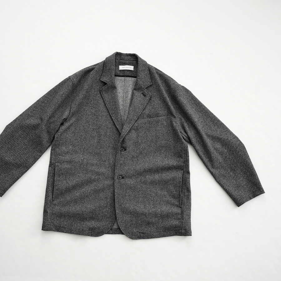程よくゆとりのあるシルエットと、生地の柔らかさでタテのラインを作った2Bジャケット。