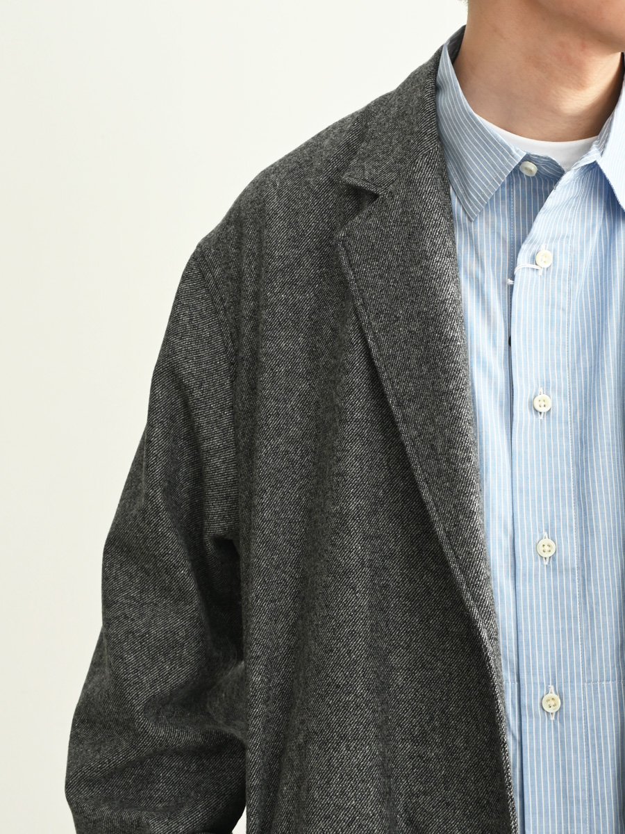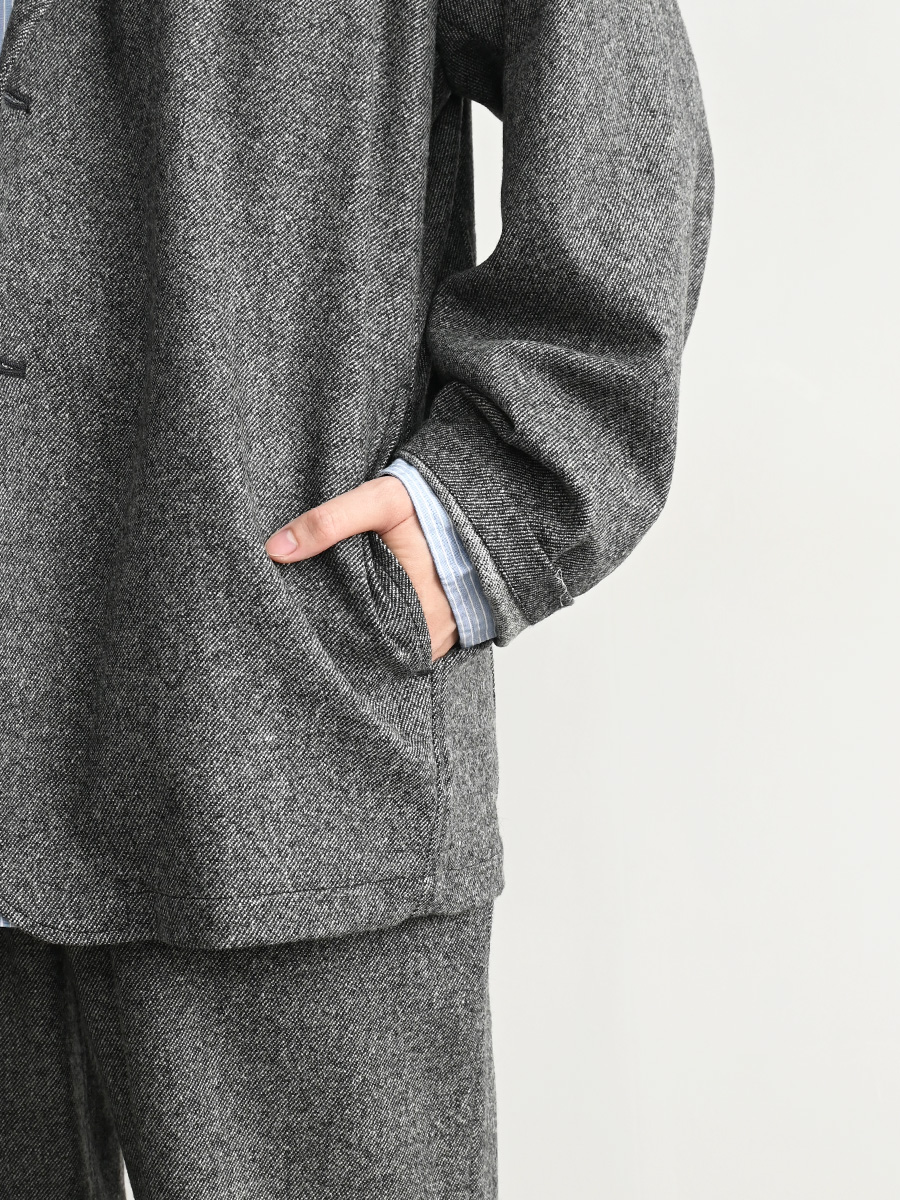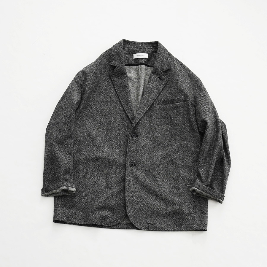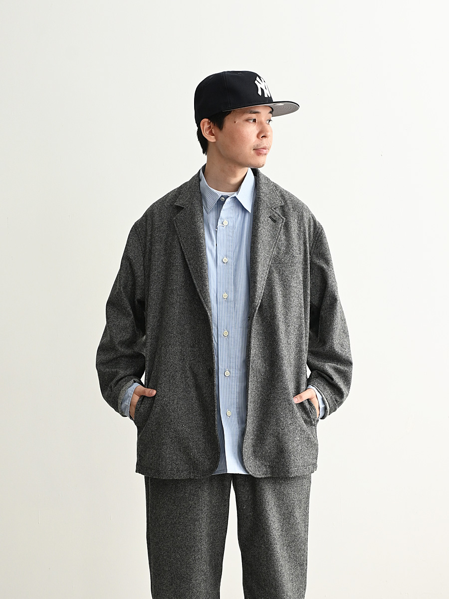 程よくゆとりのあるシルエットと、生地の柔らかさでタテのラインを作った2Bジャケット。