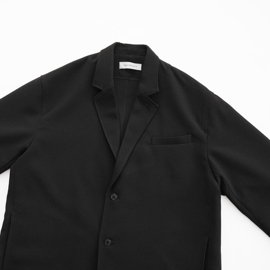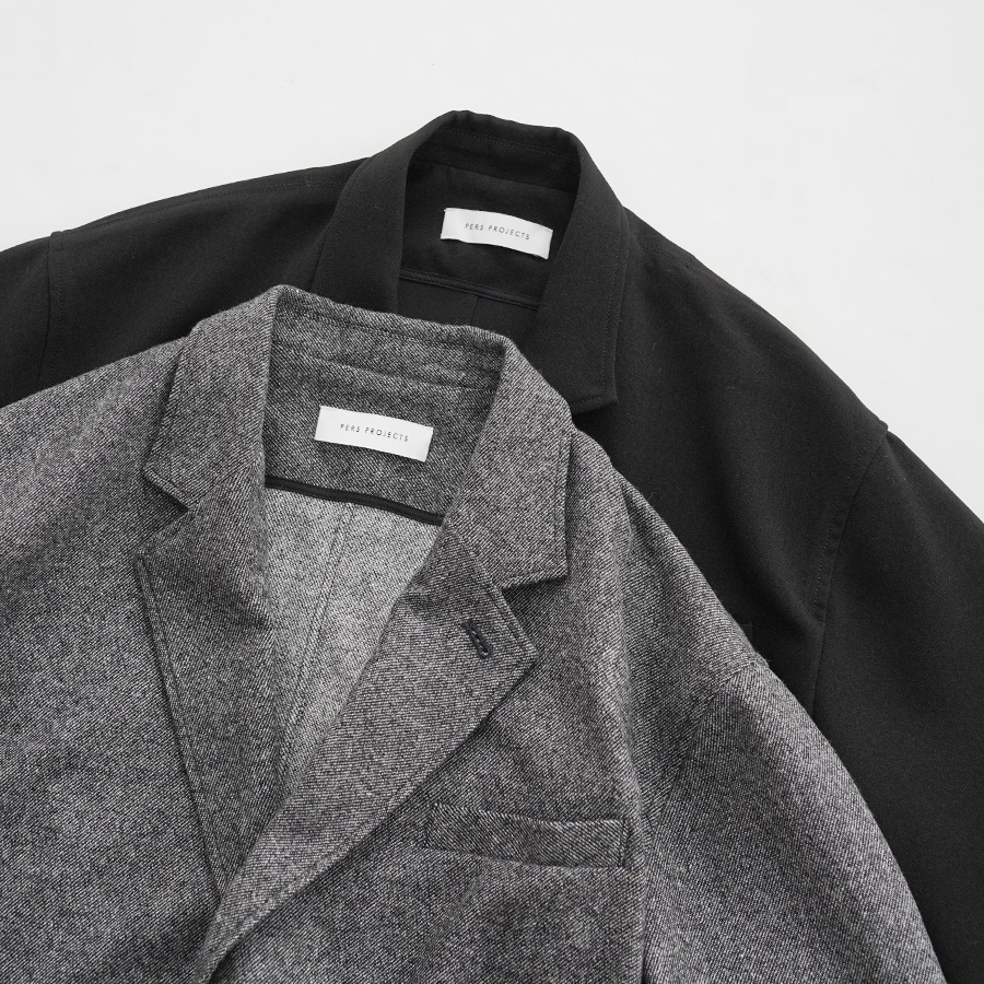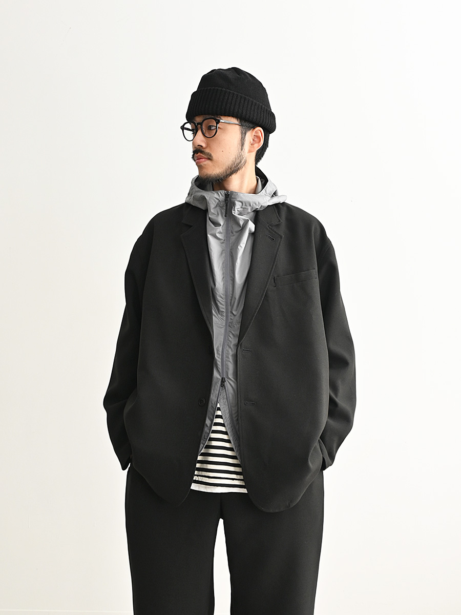 程よくゆとりのあるシルエットと、生地の柔らかさでタテのラインを作った2Bジャケット。