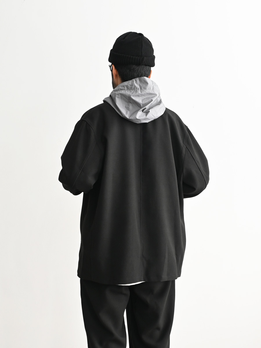 やや長めの着丈にし、腰ポケットを脇のシームポケットにすることでアウターライクに着ることができる。