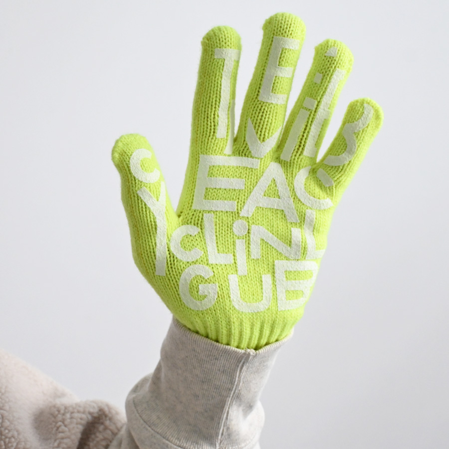 実際に軍手を編む機械を使い、軍手と同じ工程で作られています。