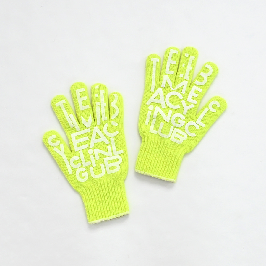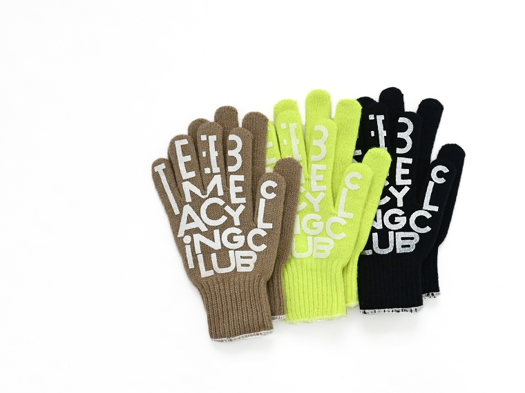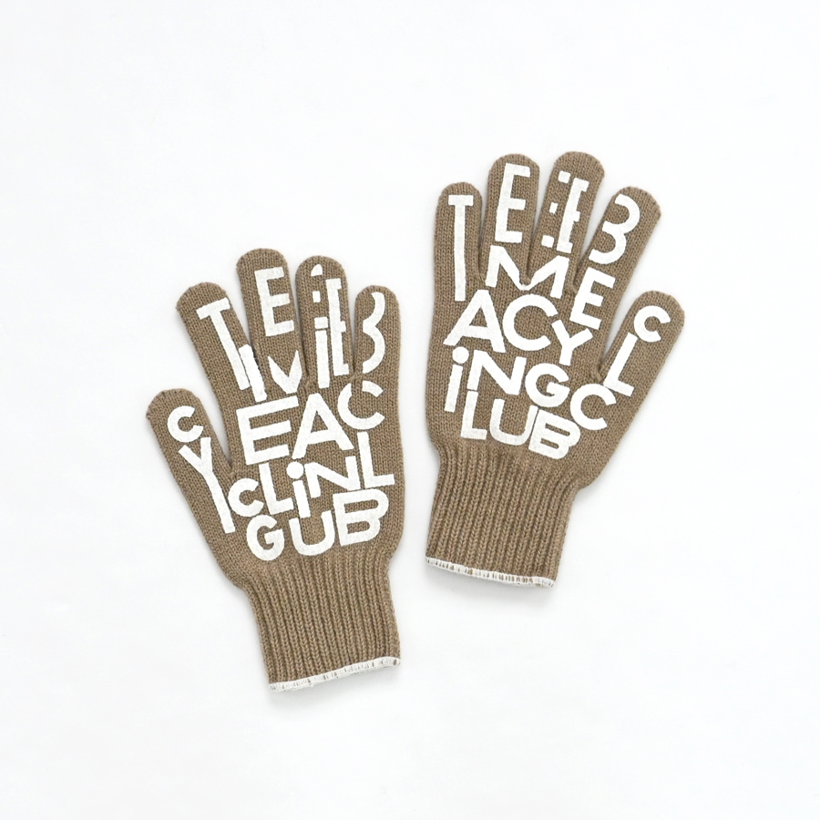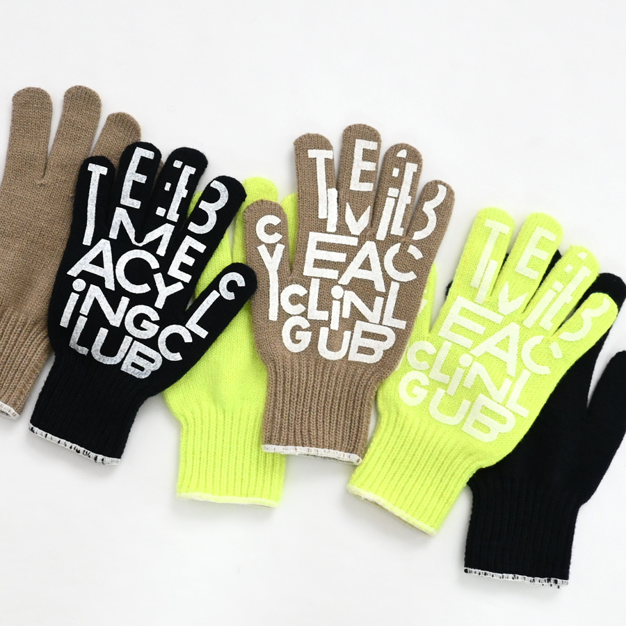 ウールとアクリル混素材にオリジナルで作成した TEMBEA CYCLING CLUBの滑り止めロゴがプリントされています。