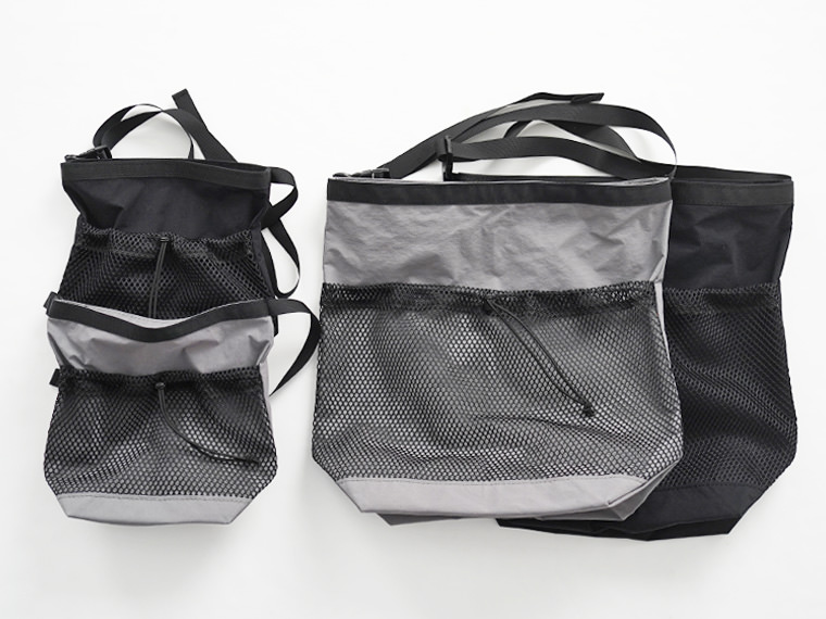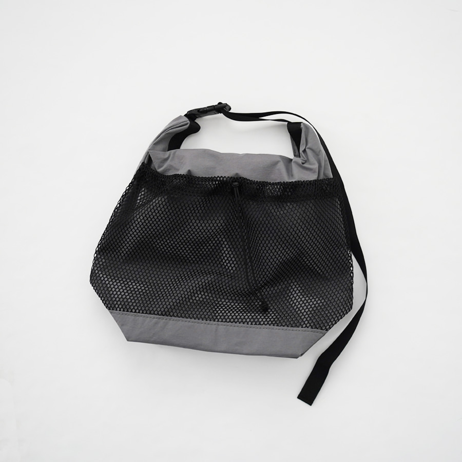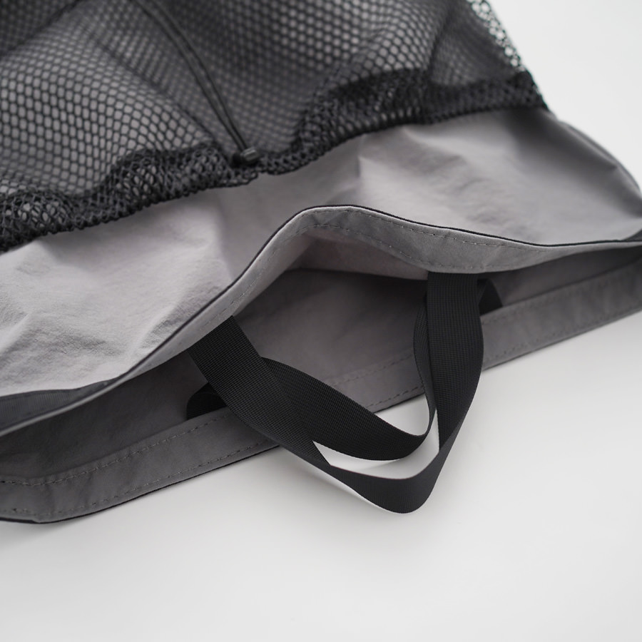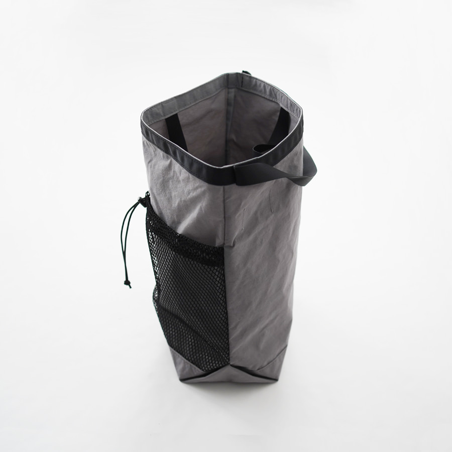 内側には手持ち用のハンドルがつき、袋口のテープは伸ばせば斜めがけで使うことができます。