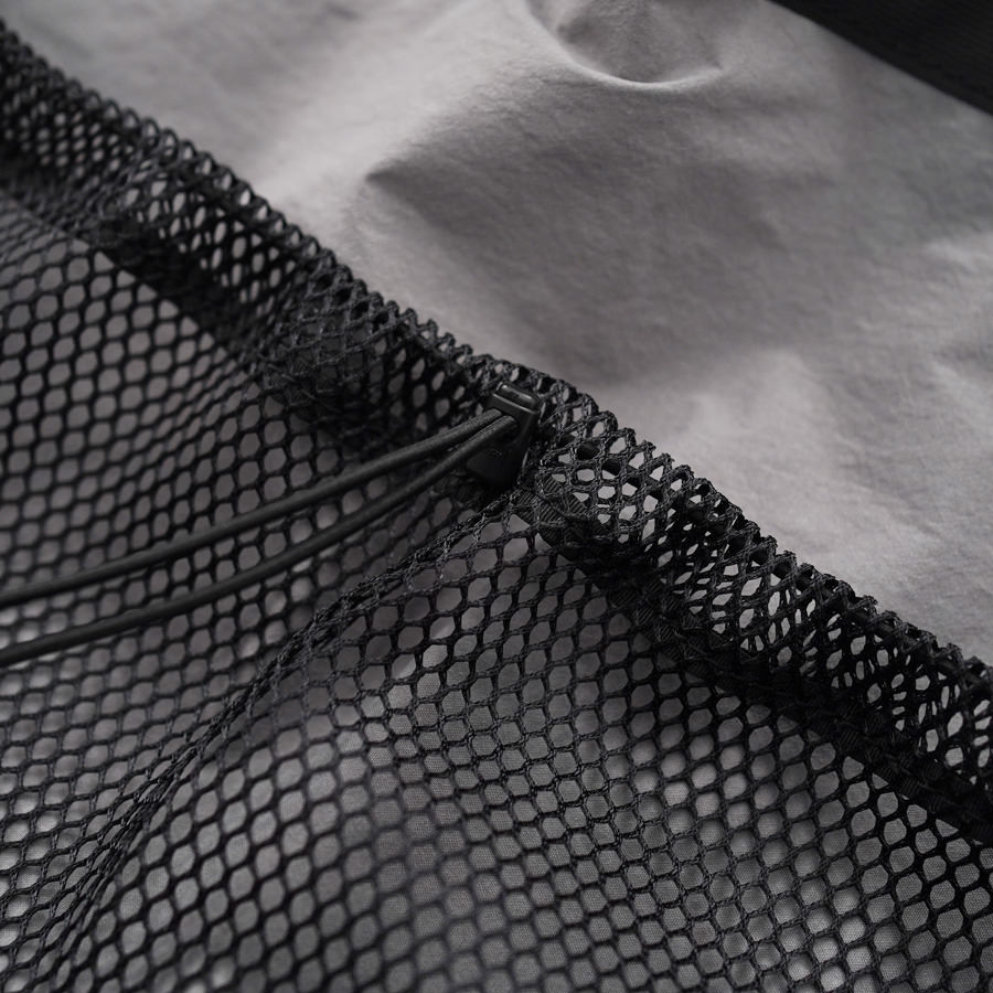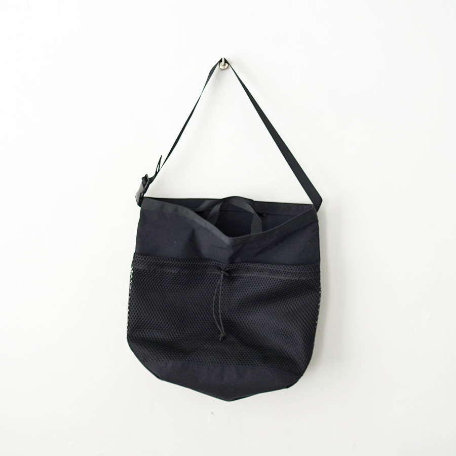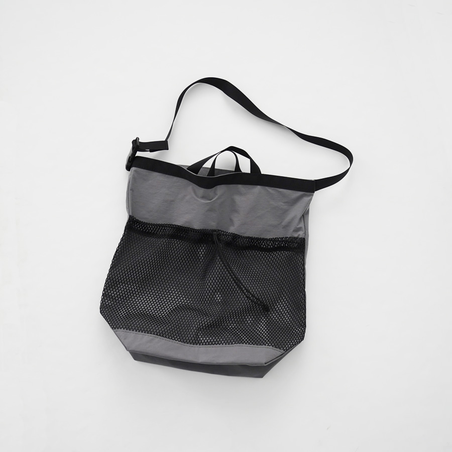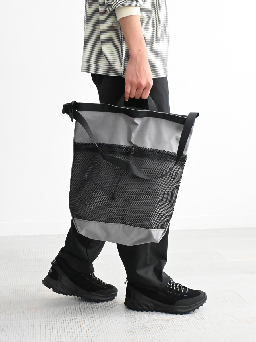 内側には手持ち用のハンドルがつき、袋口のテープは伸ばせば斜めがけで使うことができます。