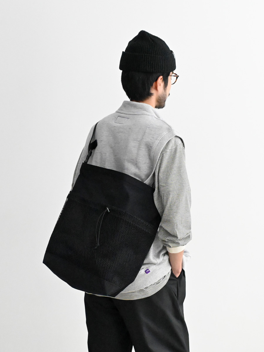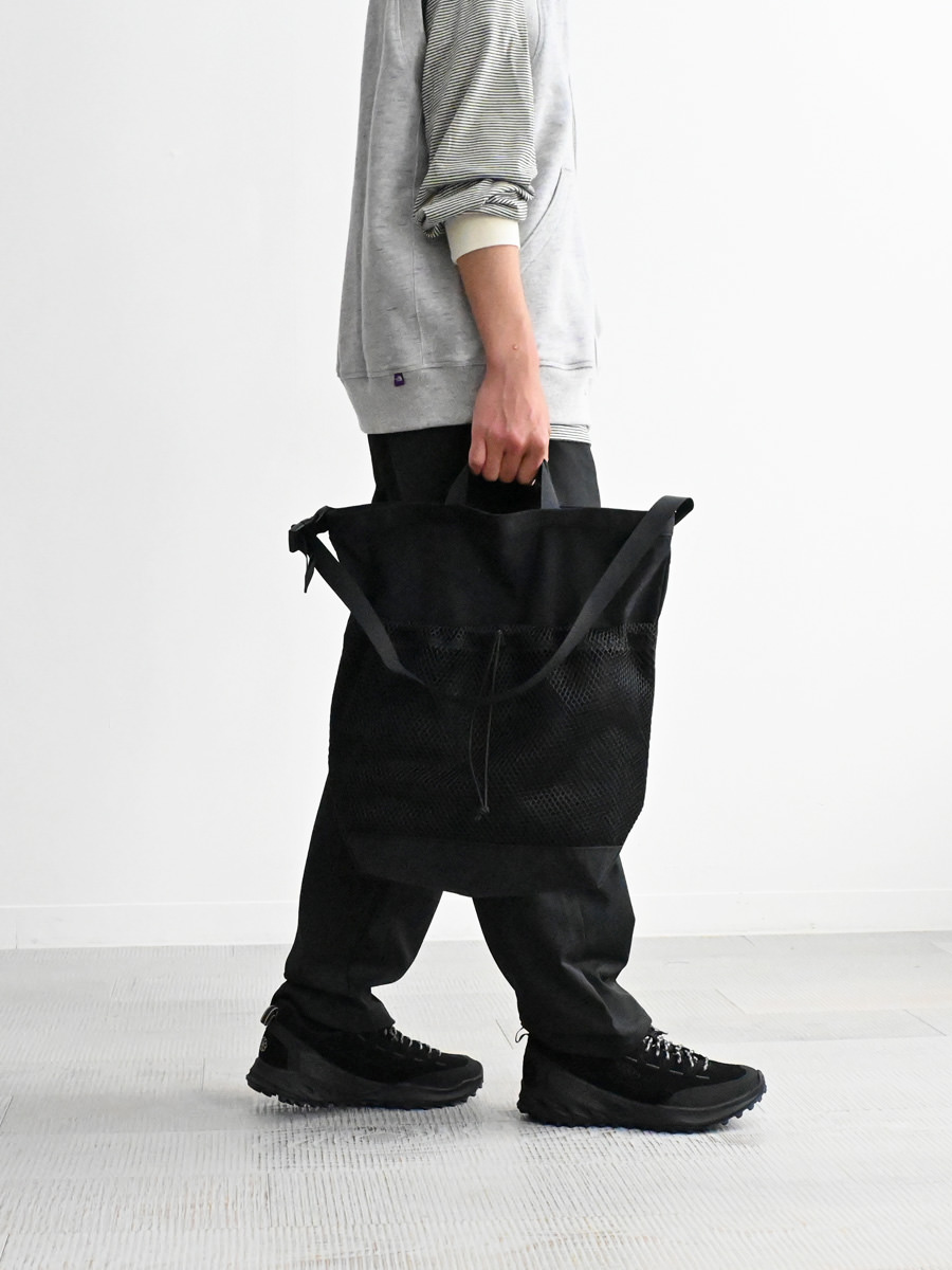 袋口の部分をクルクルと巻くことができるトートバッグ。