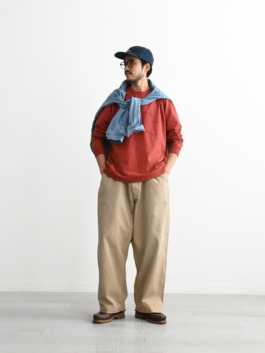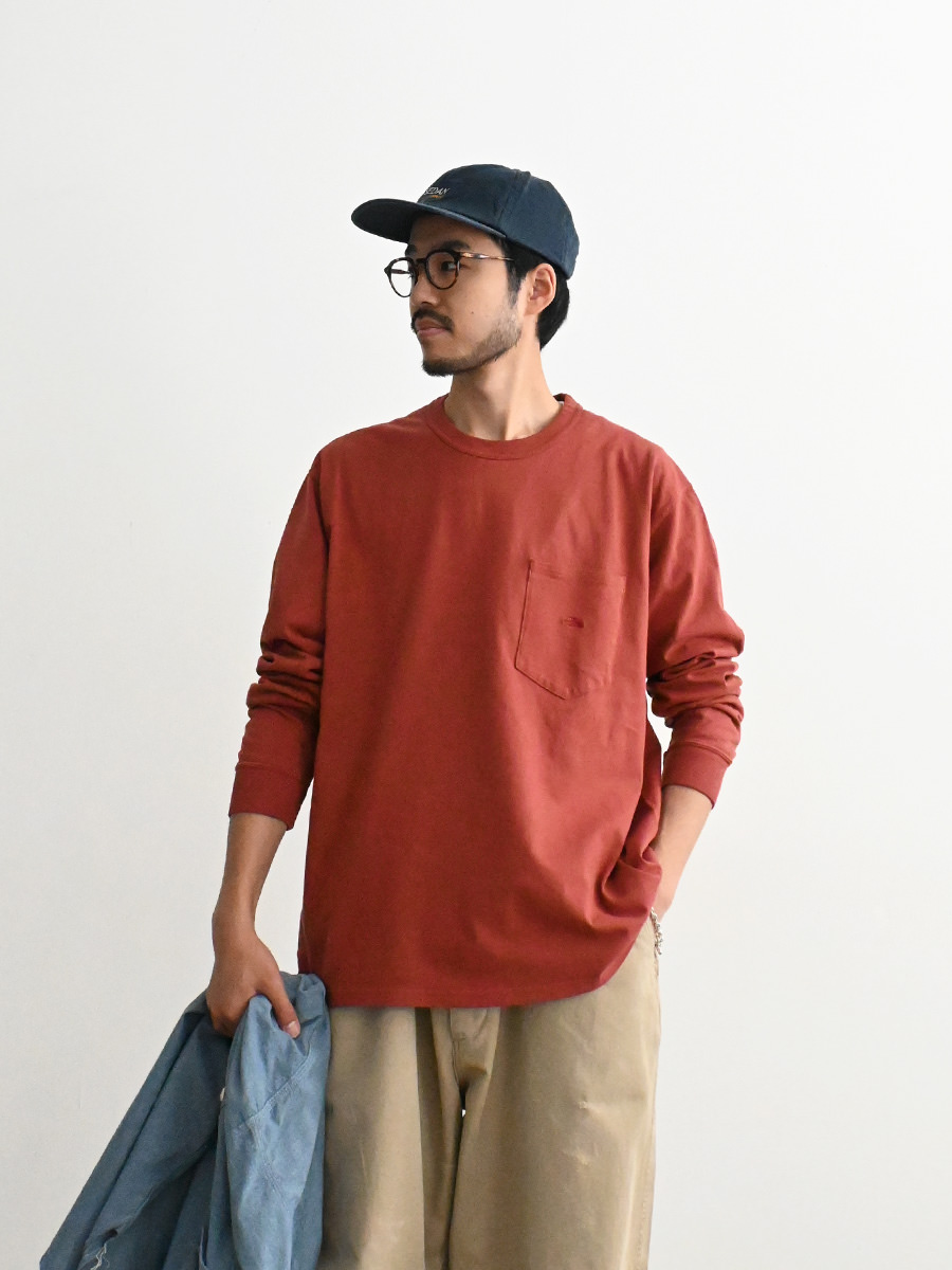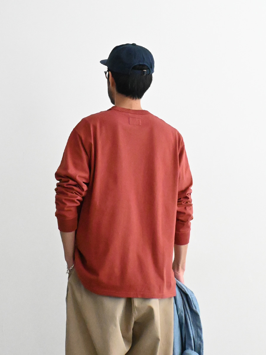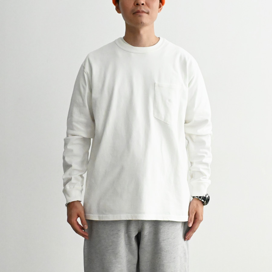 オーガニックコットン天竺を使用したロングスリーブポケットTシャツ。