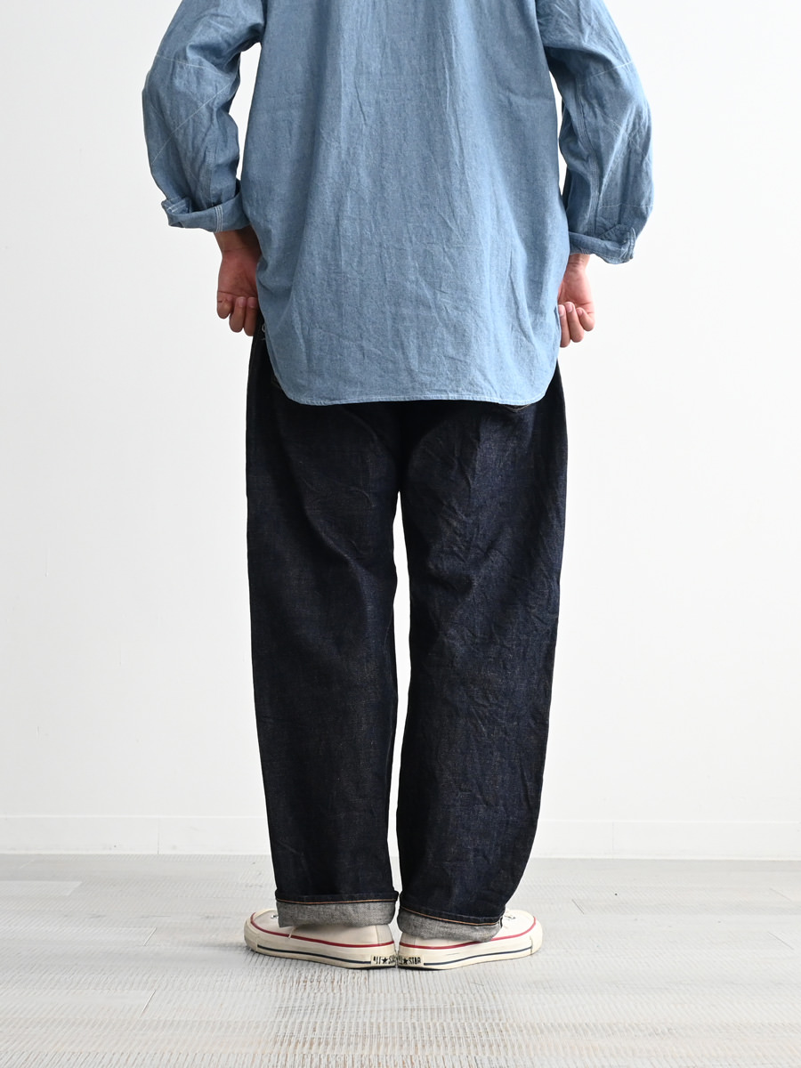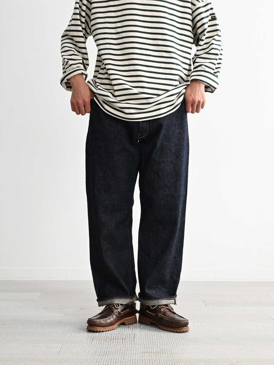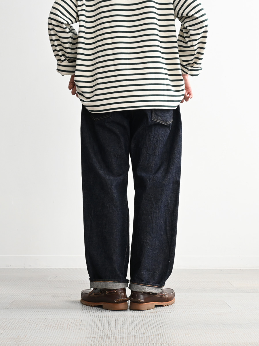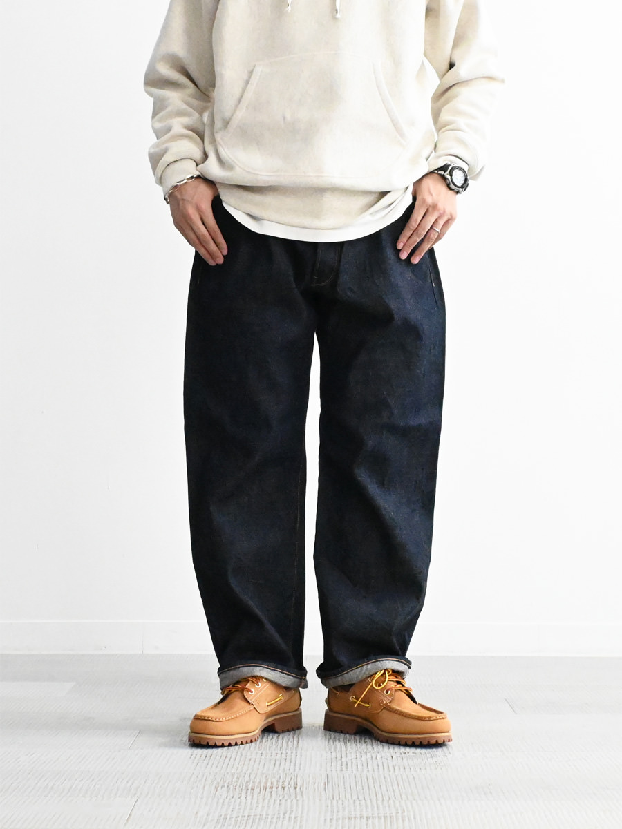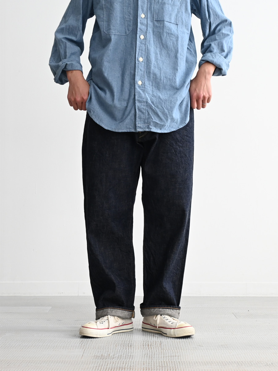 シルエットはヒップ~ワタリは適度にゆとりを持たせ、ひざから裾にかけて少しだけテーパードを入れたBIG E寄りのシルエットです。