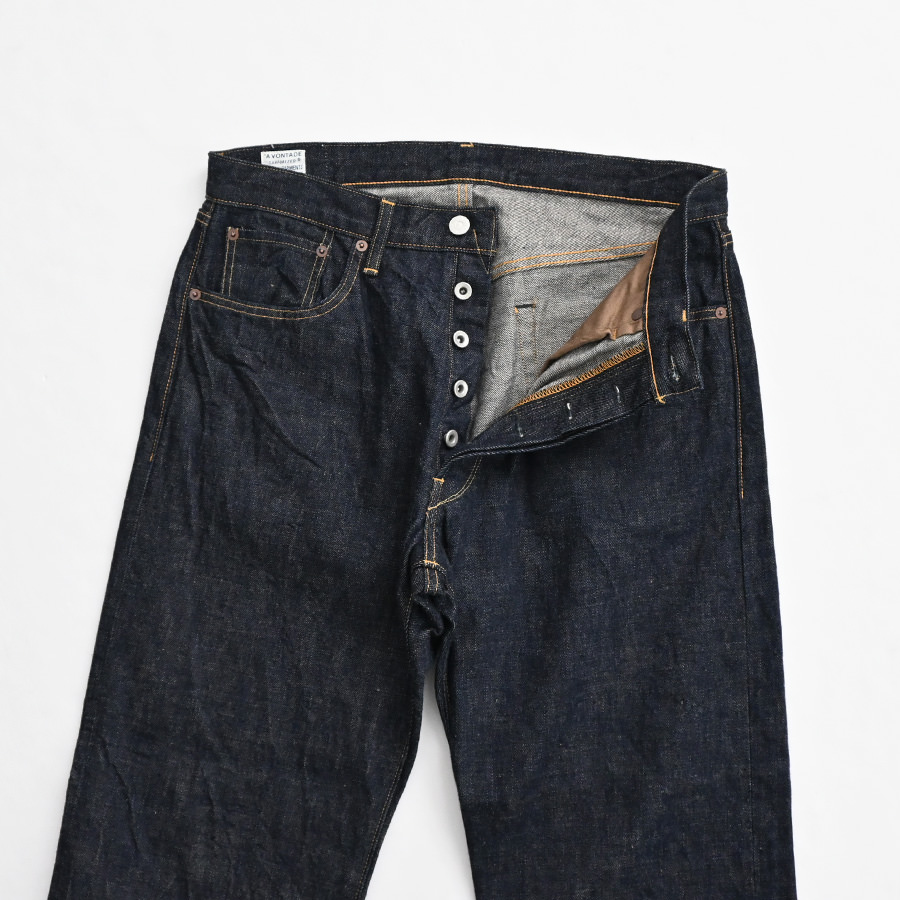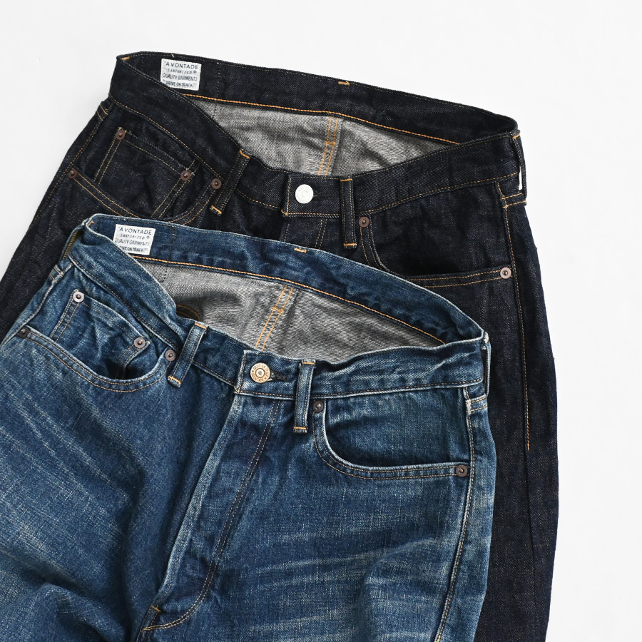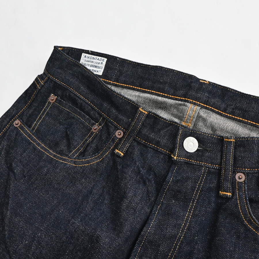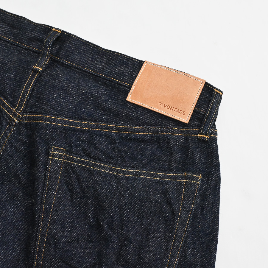 緯糸に茶綿をブレンドした13.5oz の*A VONTADE オリジナルセルビッチデニムを使用した、5ポケットジーンズです。