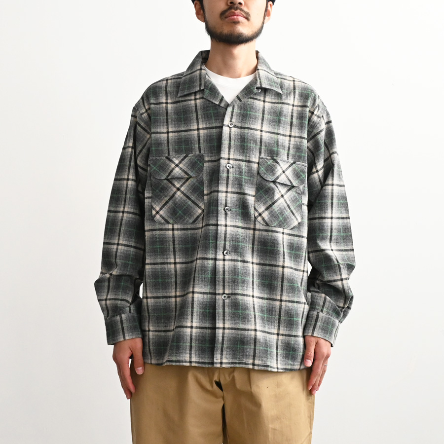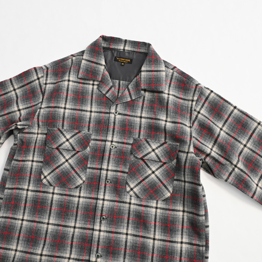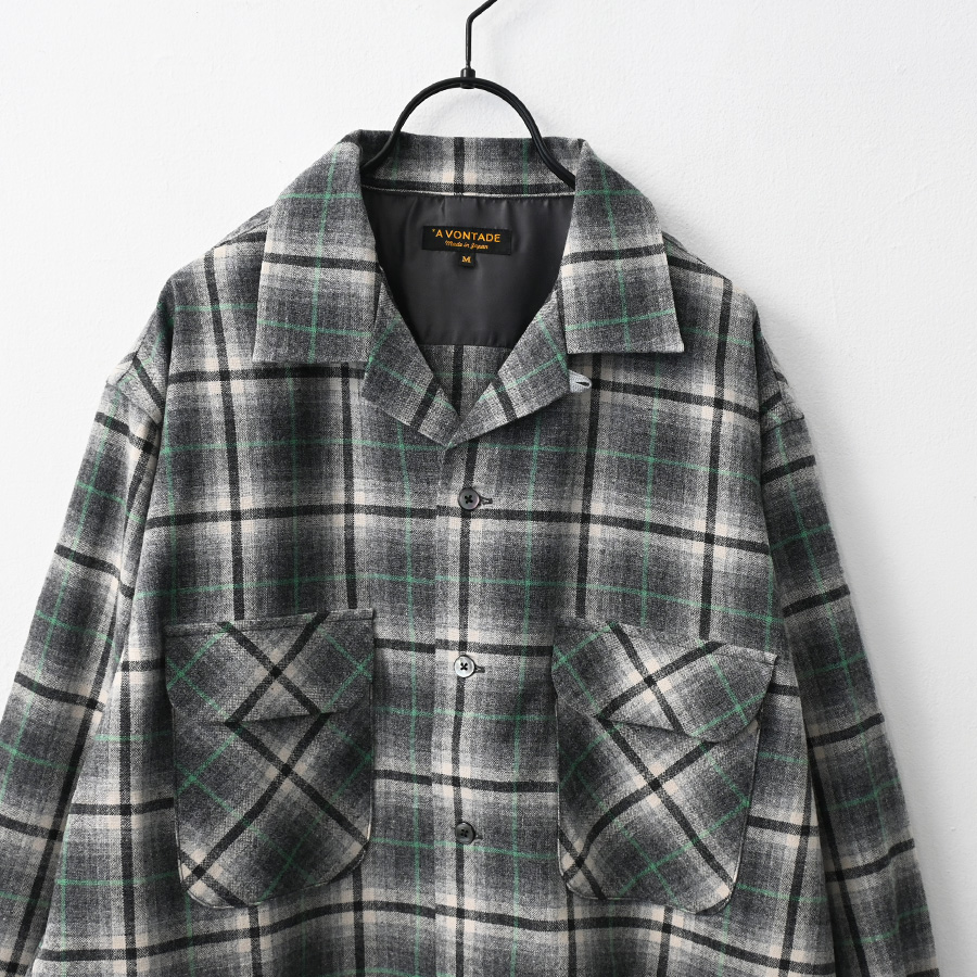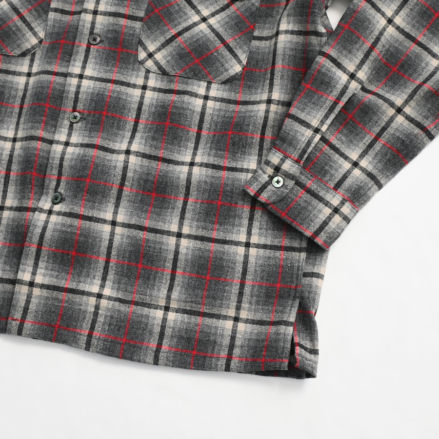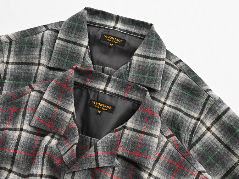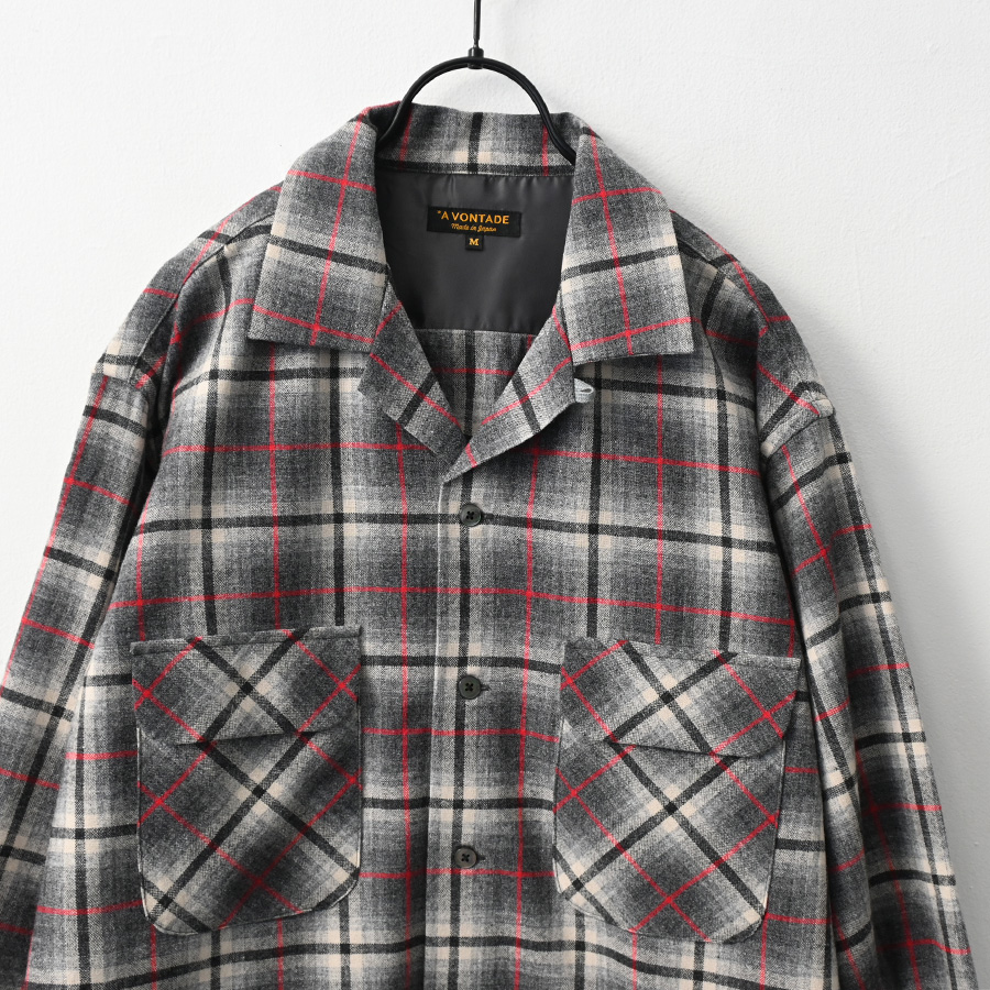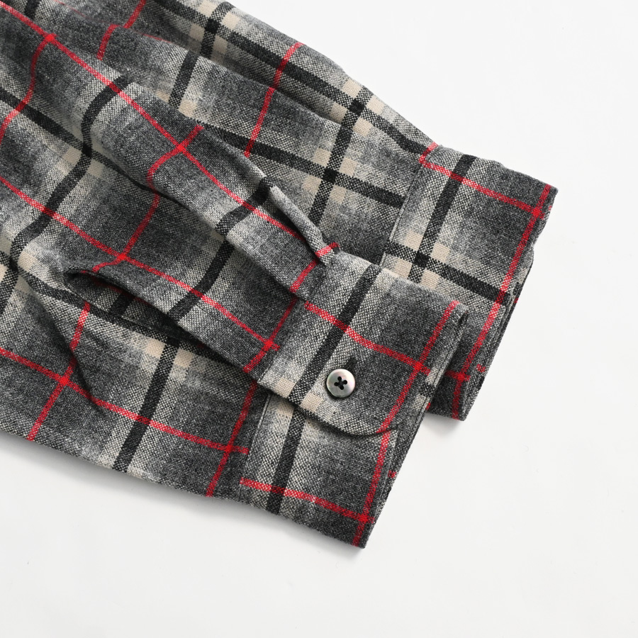 ブランドオリジナルで作成した、ウールチェックを使用した開襟シャツです。