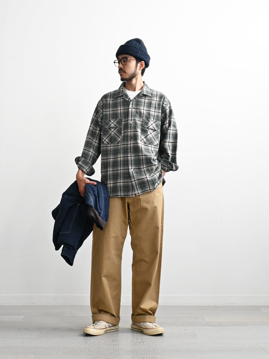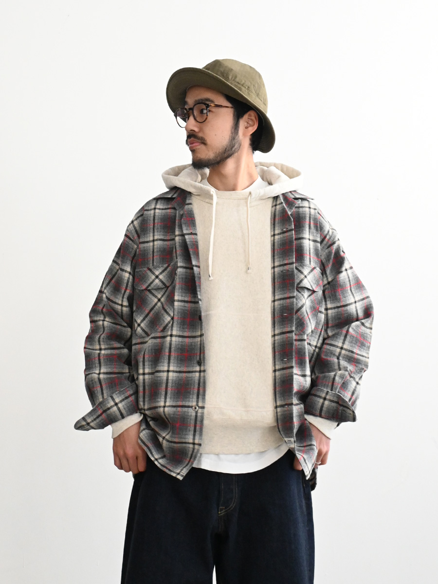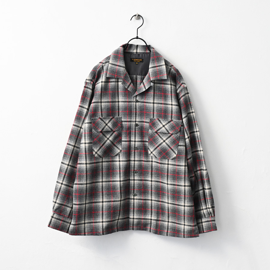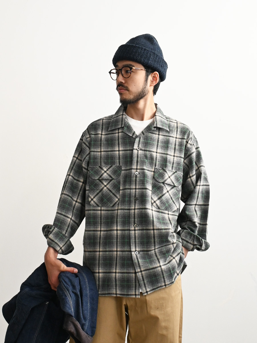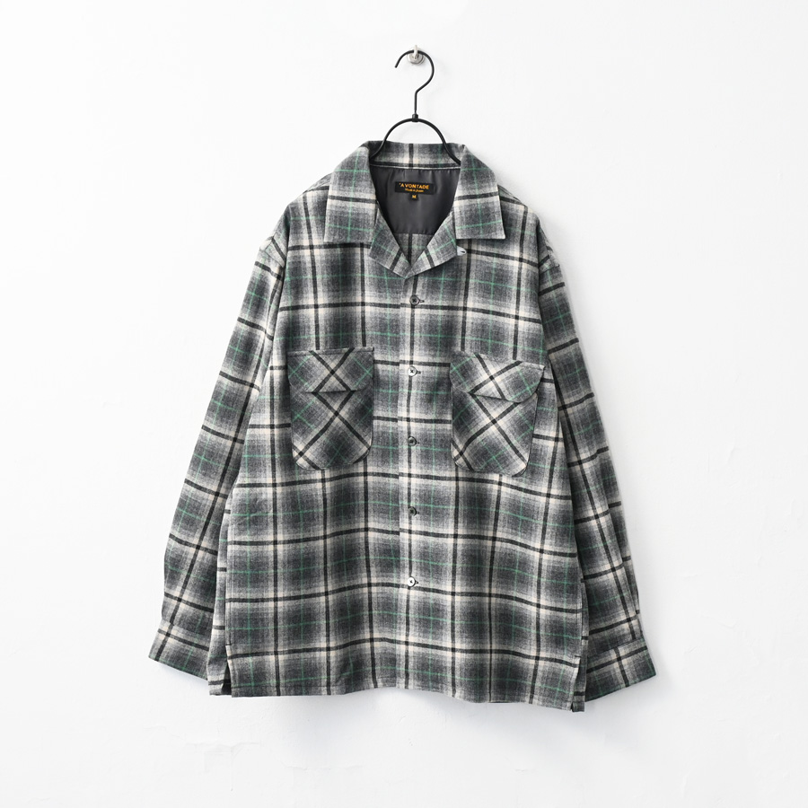 ブランドオリジナルで作成した、ウールチェックを使用した開襟シャツです。