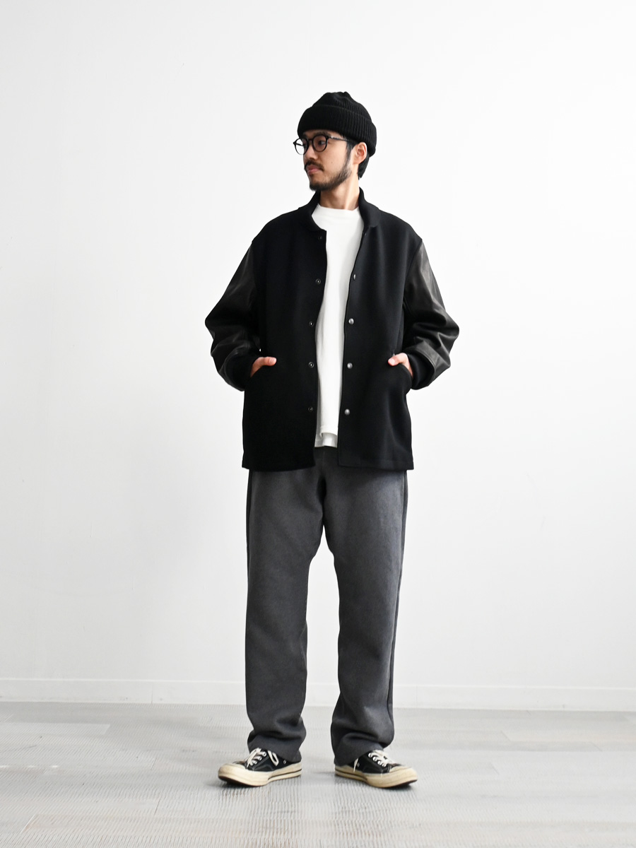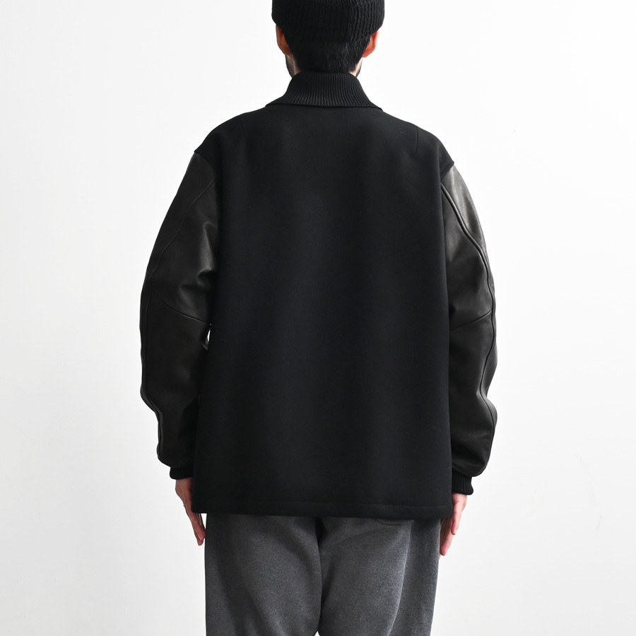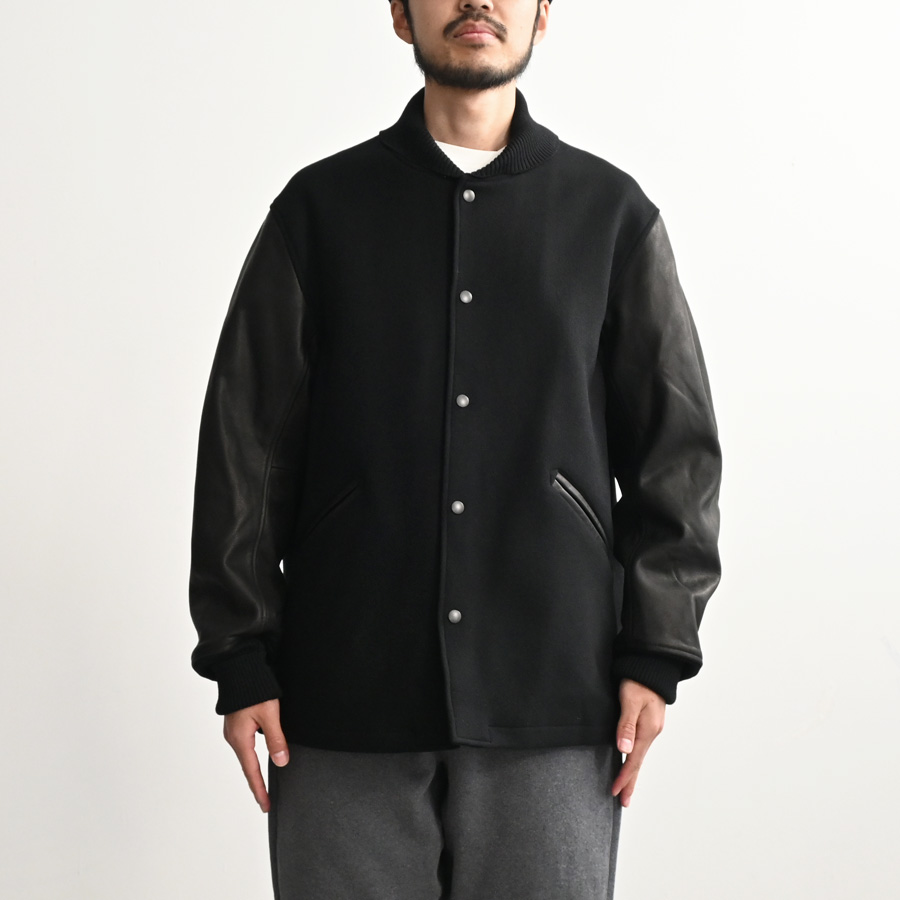 70年代のアワードジャケットを参考に、身頃はメルトン地、袖にはオリジナルの牛革を使用したアワードジャケットです。