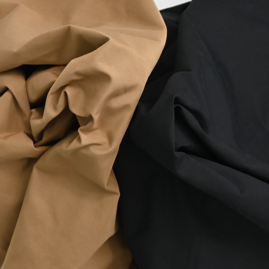 撥水加工を施した上で表面を微起毛加工し、ぬめりのあるタッチに仕上がっています。