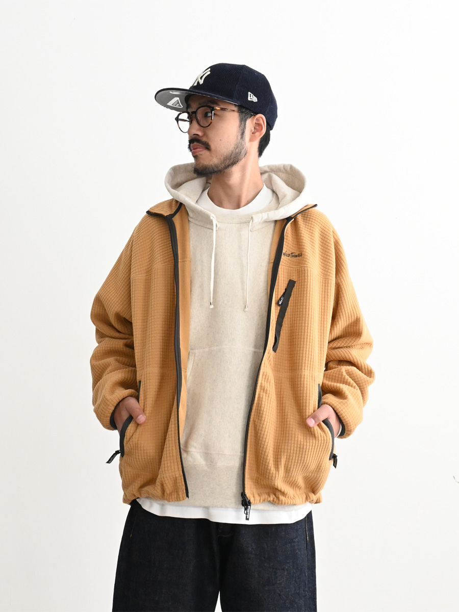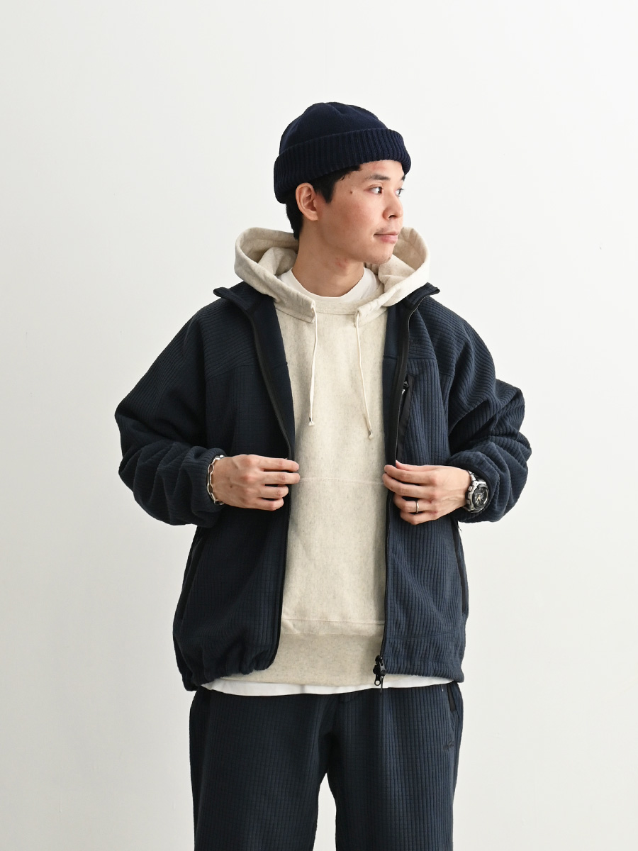 中空糸とエアロゲルにより保温性を高めたグリッドフリースを表使いしたジャケット。