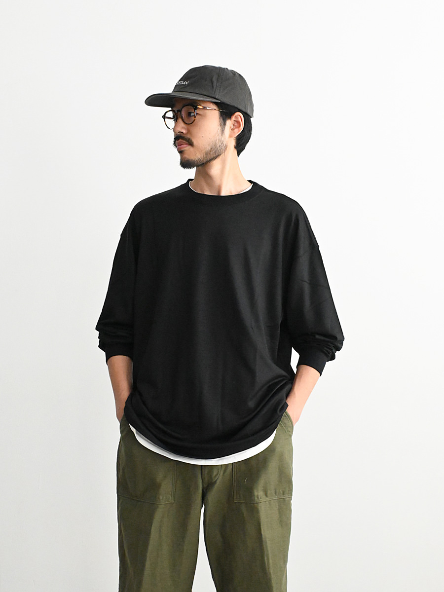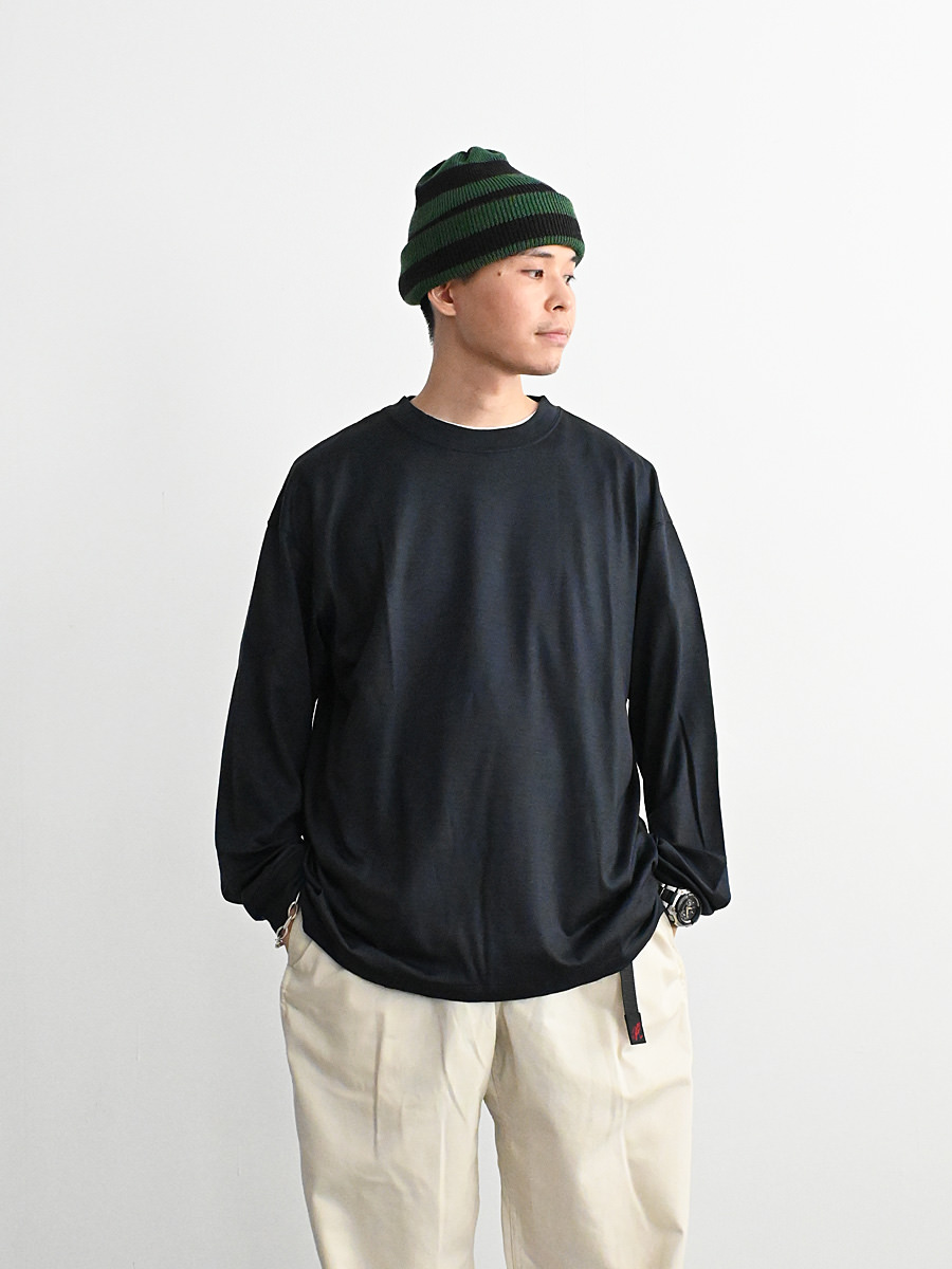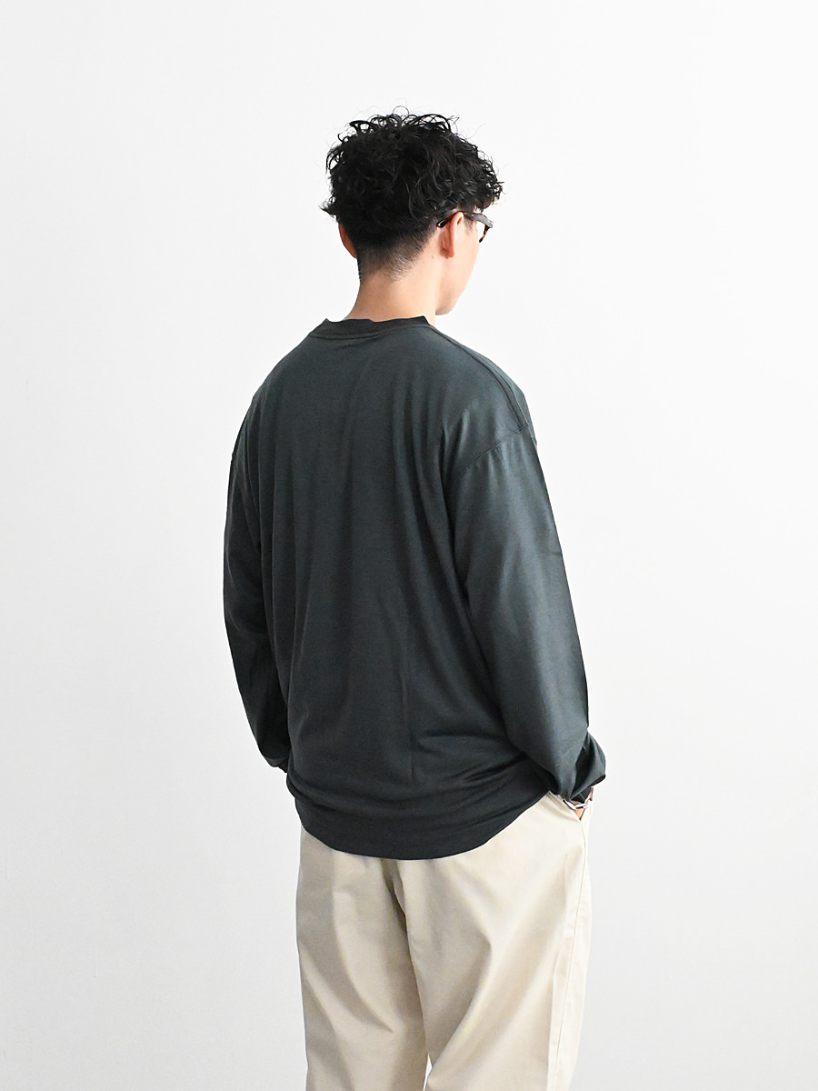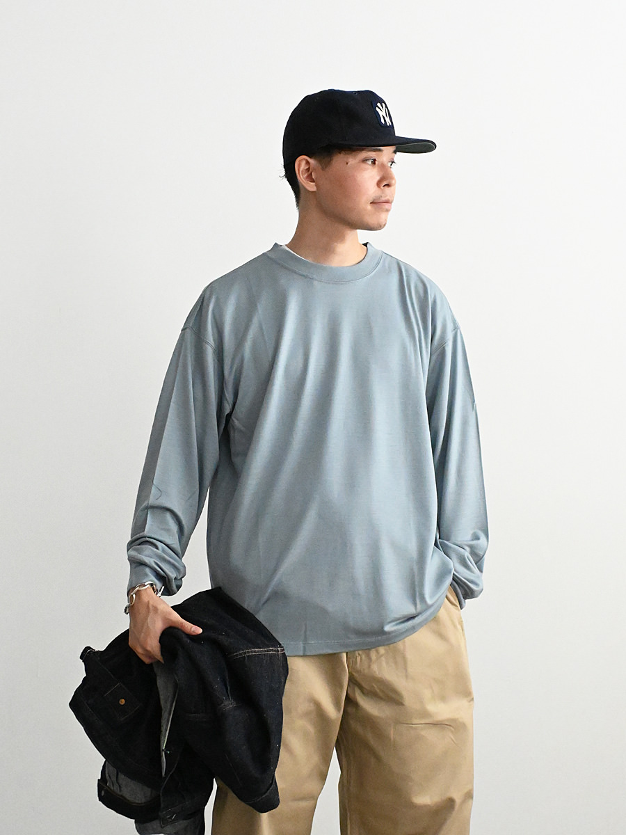 細番手のメリノウール糸を100%使用した天竺の長袖Tシャツ。
