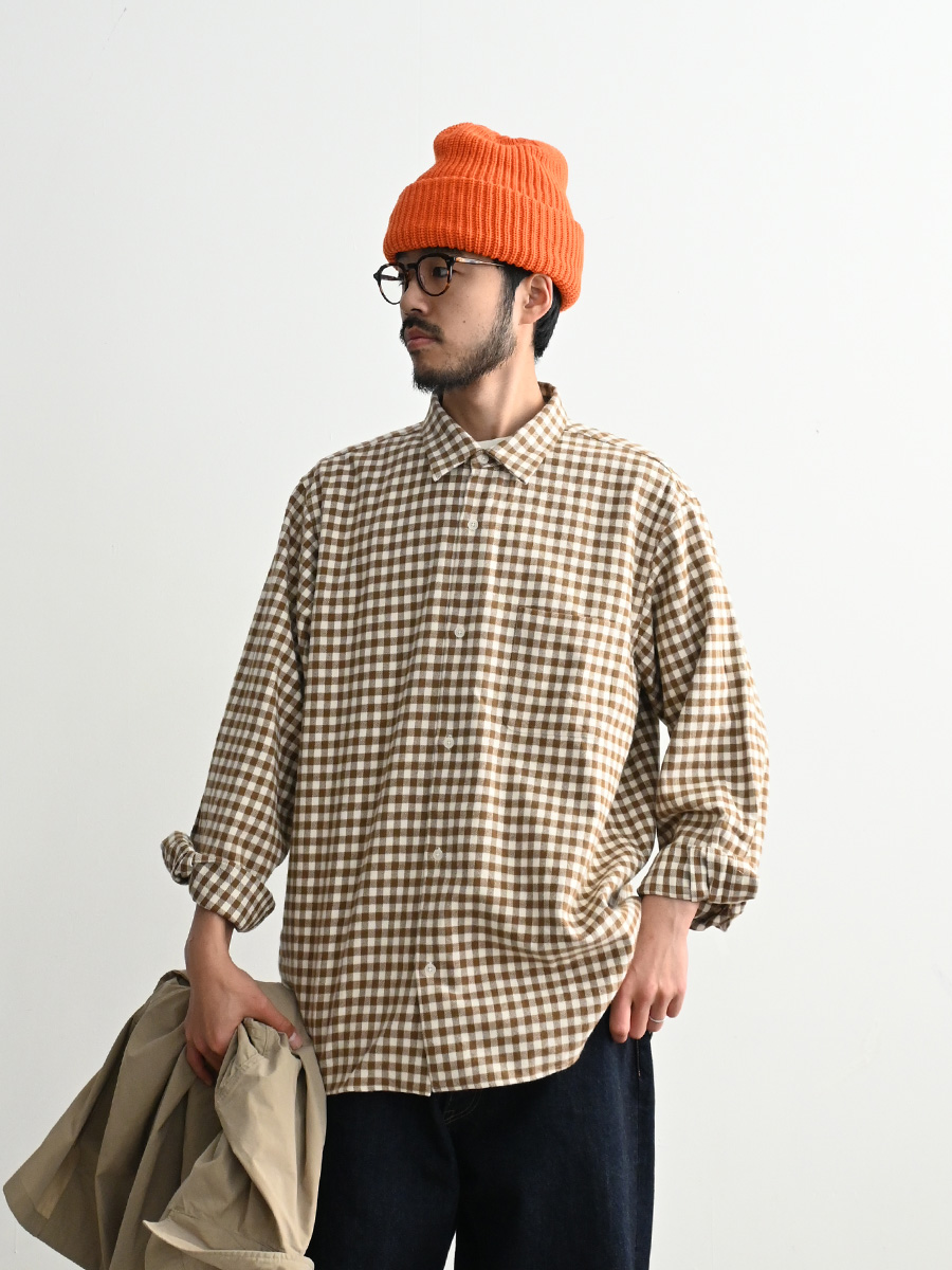 ゆったりと大きめに羽織るのが気持ちいい、YAECA定番のボタンシャツです。
