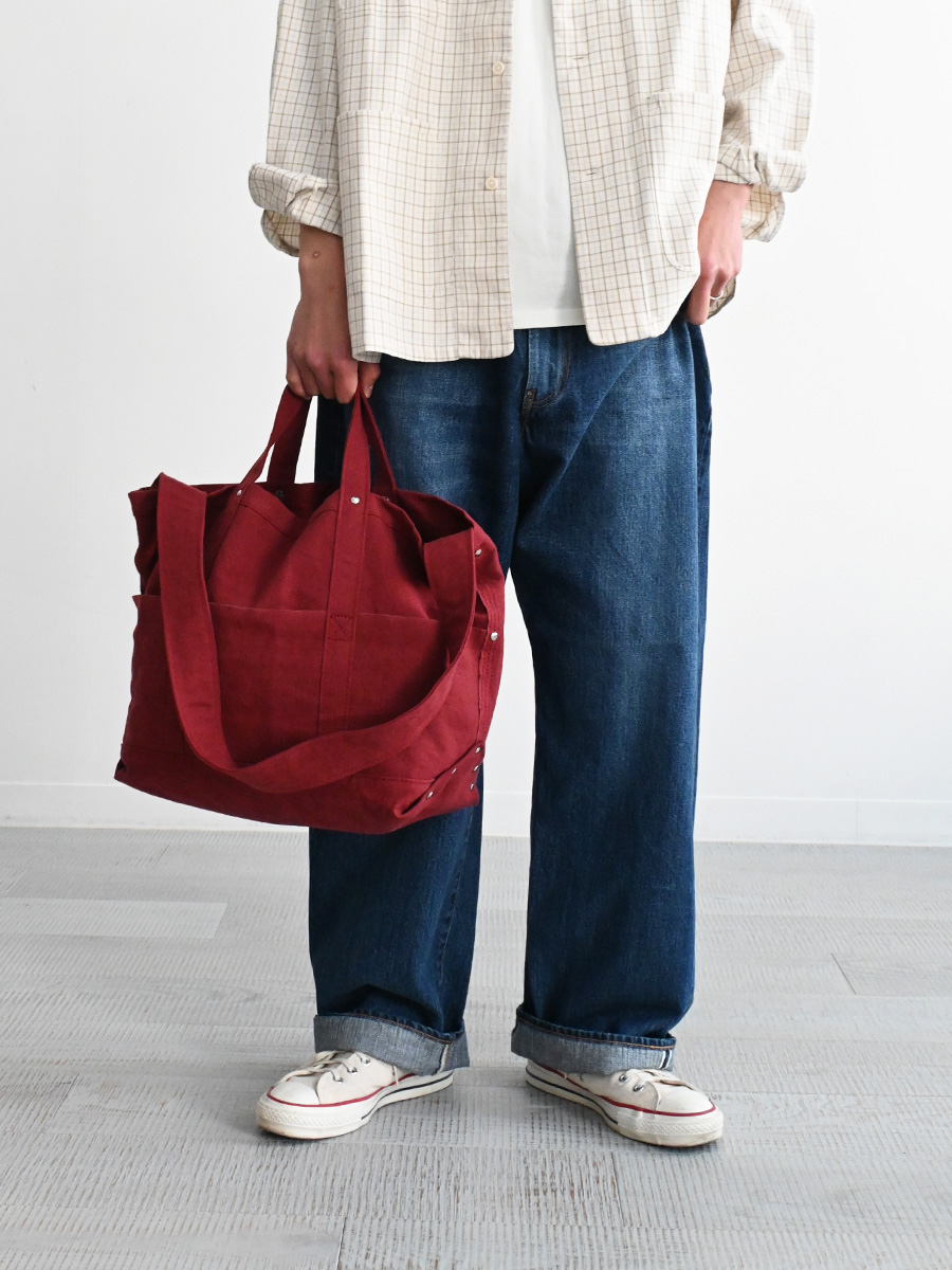 リネンを織り交ぜることで、軽く扱いやすいだけでなく、程よくクタッとして使い古されたようなコットンリネンのライトキャンバス素材。