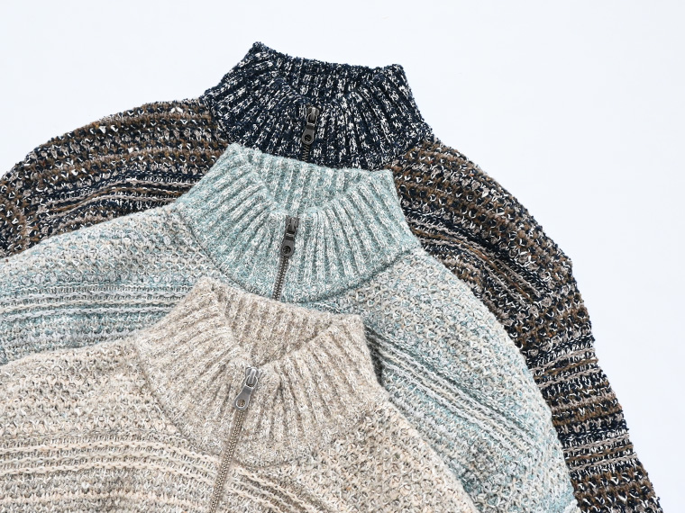 クラシックな空気を漂わせるテクニカルな糸使いと色彩豊かなミックス感が特徴的。