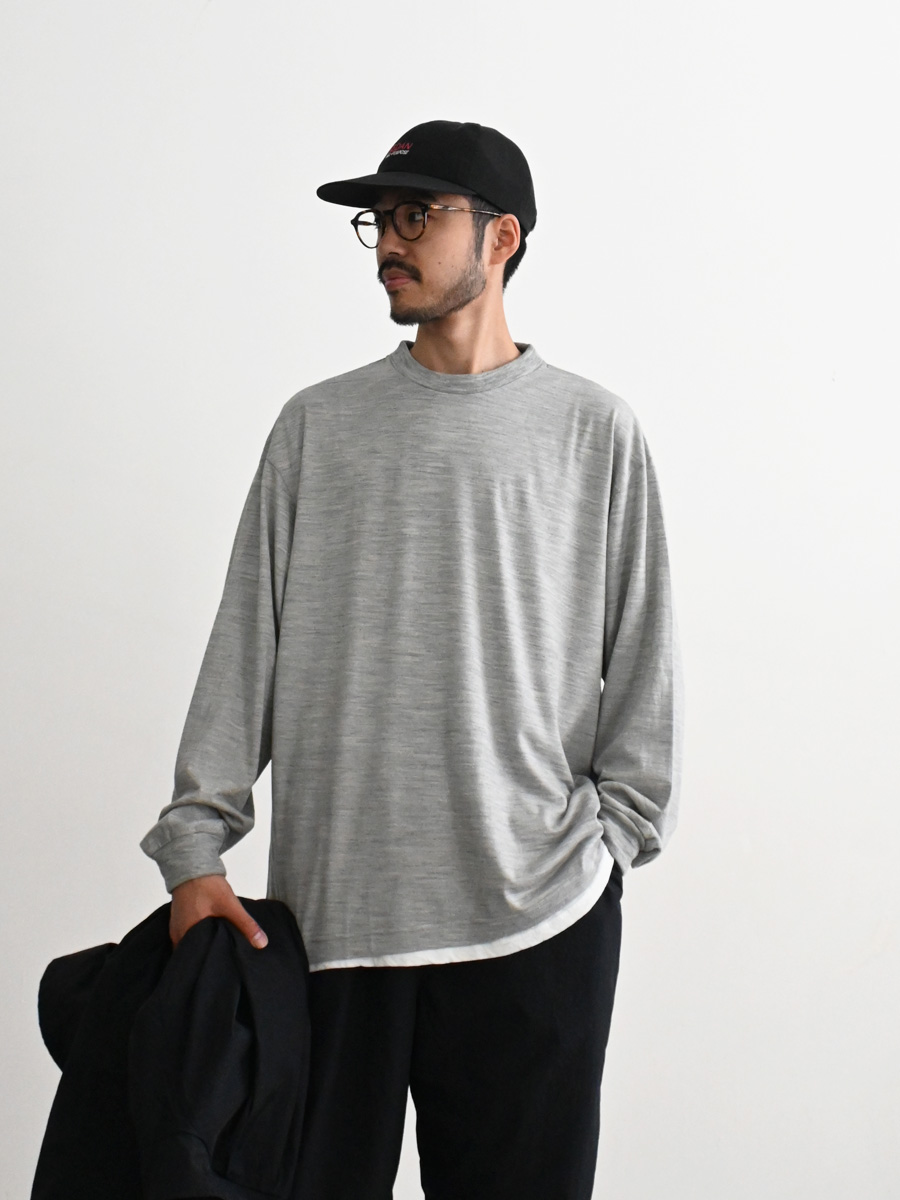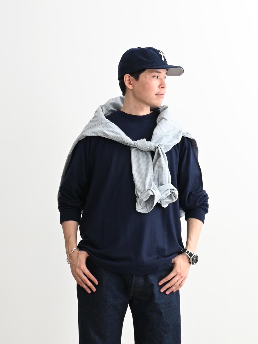 ゆったり目のサイズ感で一枚でもインナーでも使えるアイテムです。