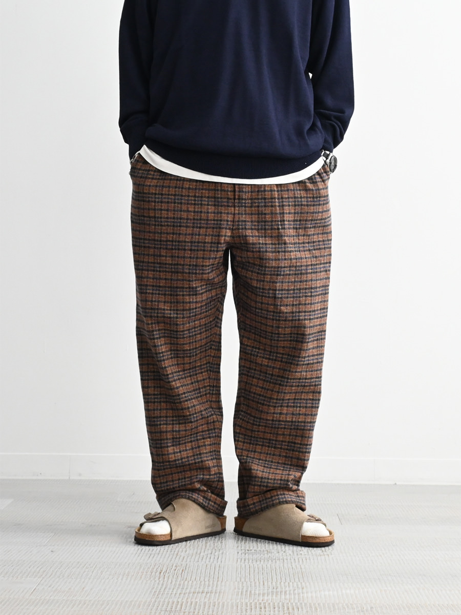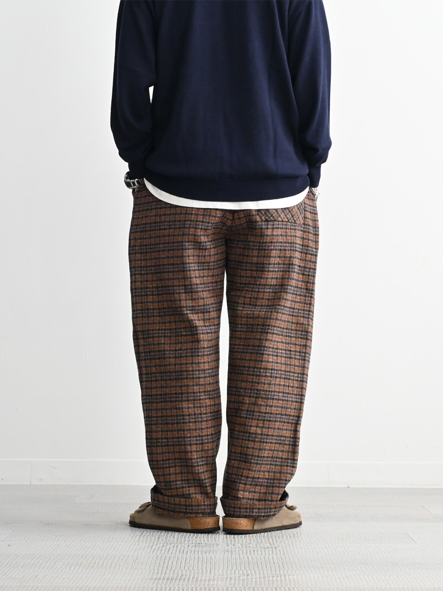ウールツィード調の膨らみあるコットンチェックを生地を使用したイージートラウザーです。