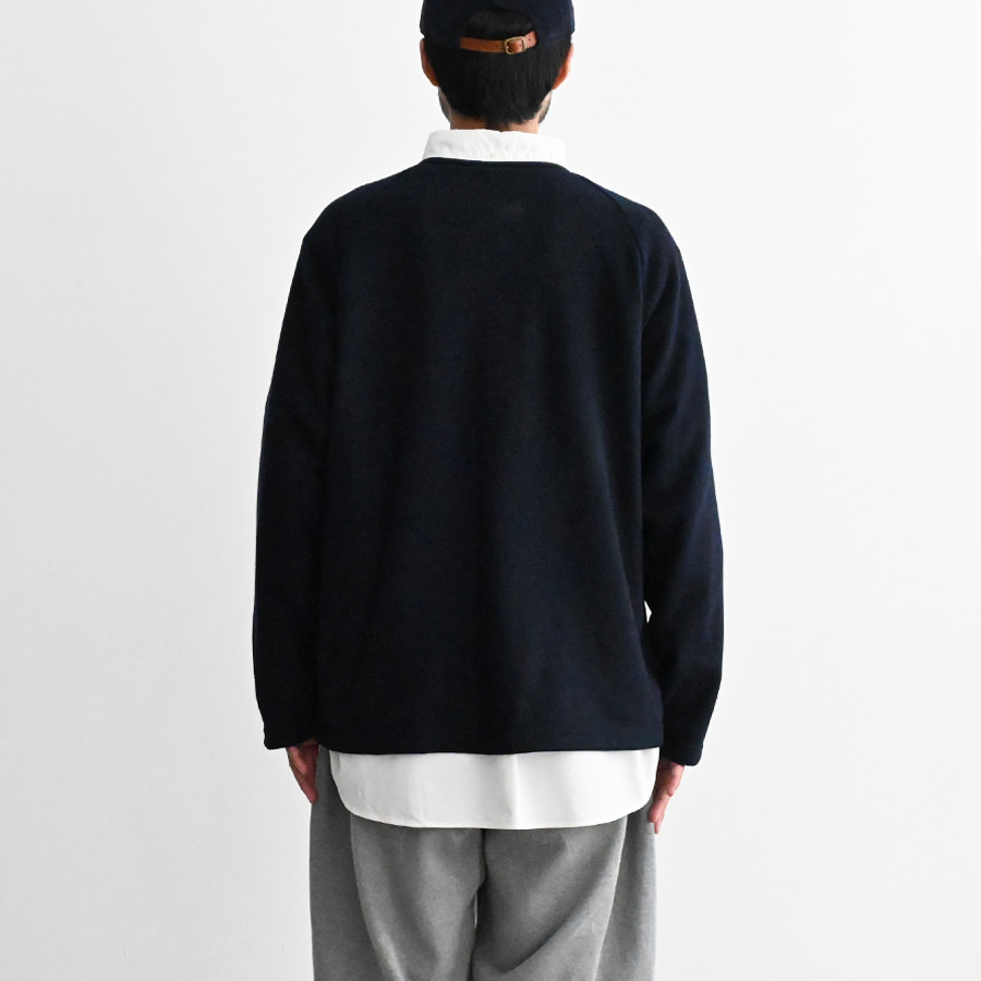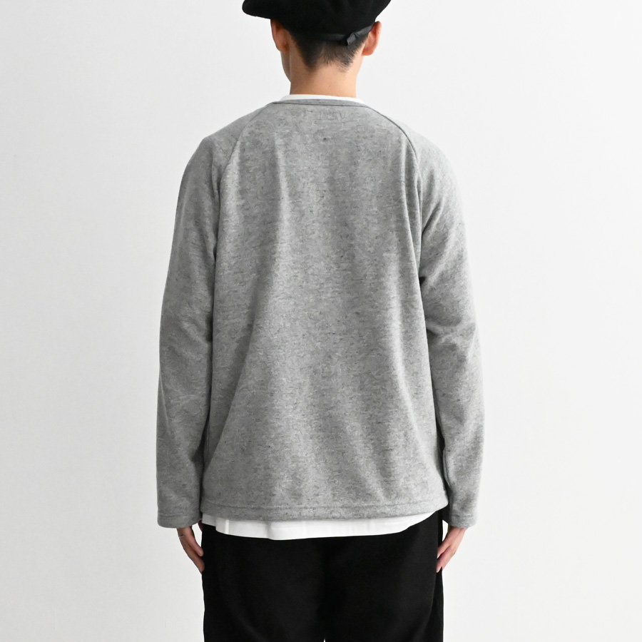 袖付けはラグランスリーブで、ややゆとりのあるボックスシルエット。